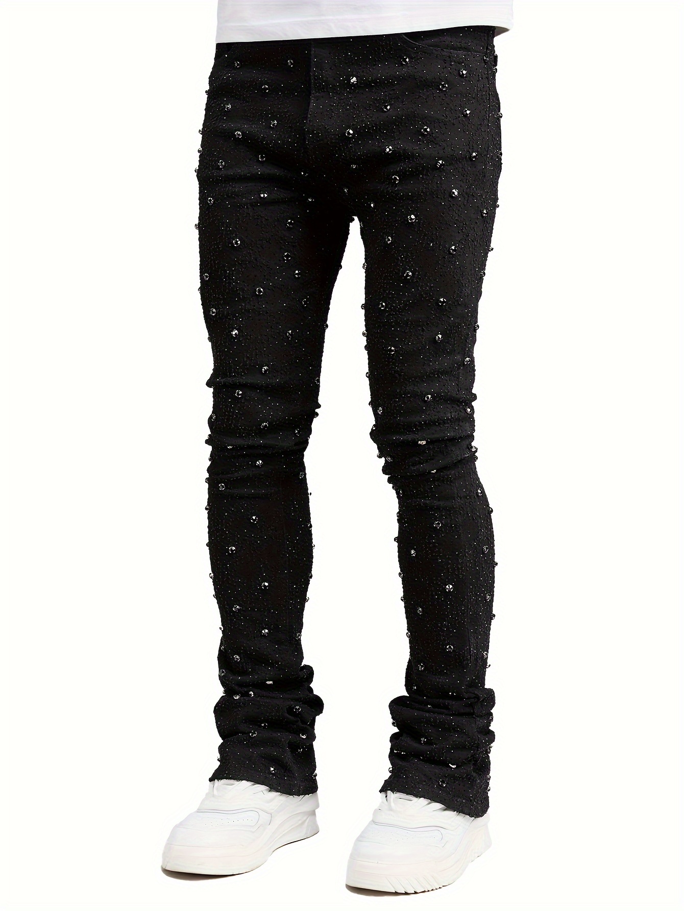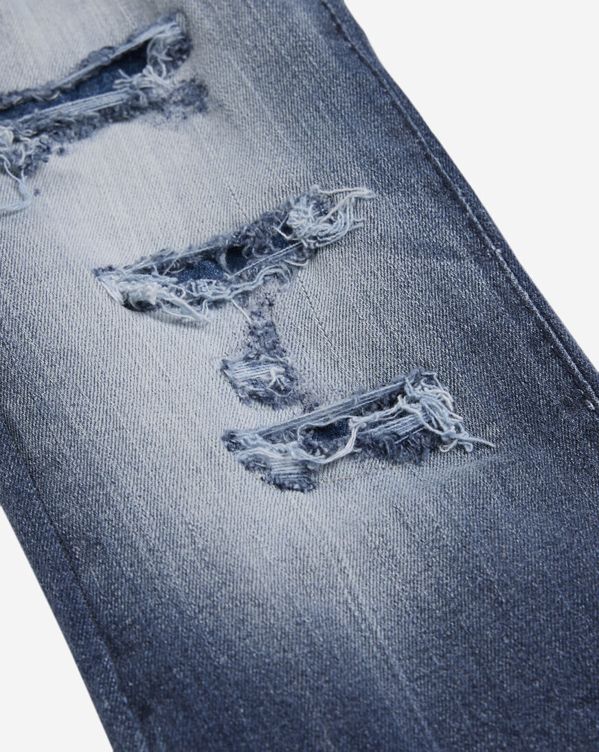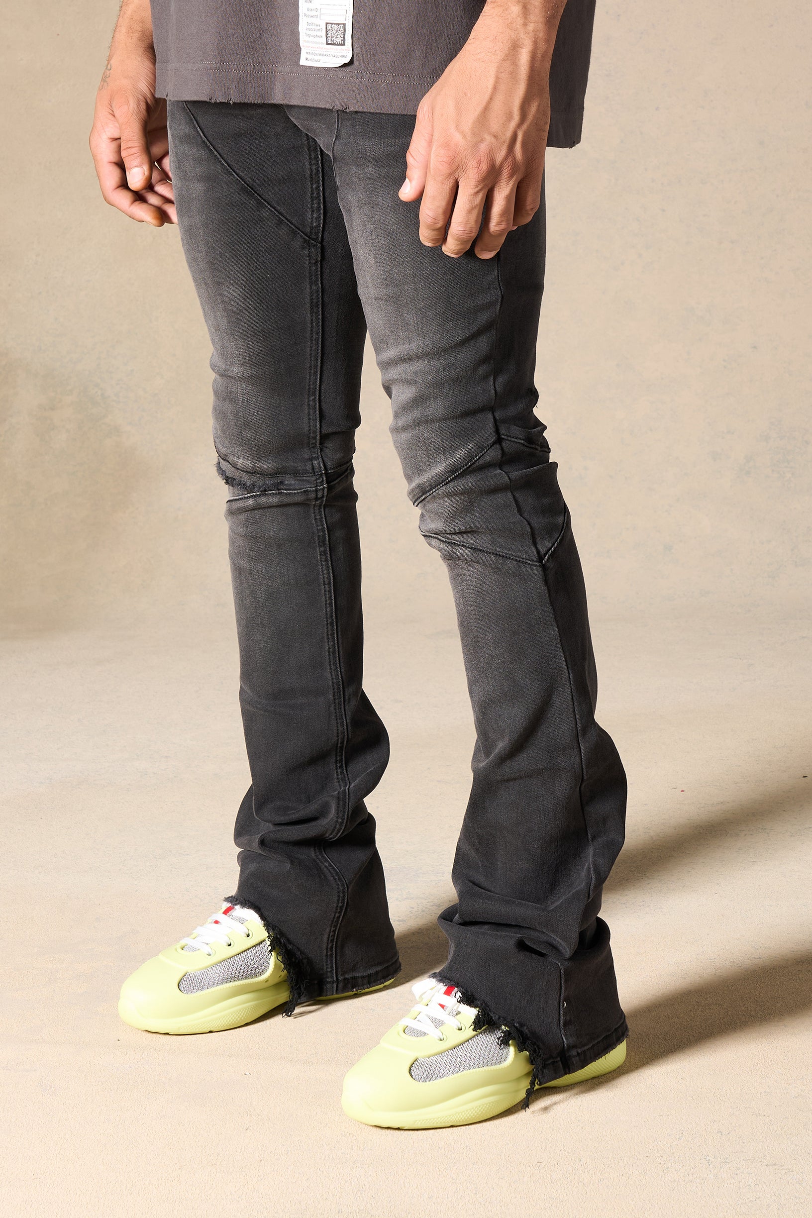 stacked denim jeans