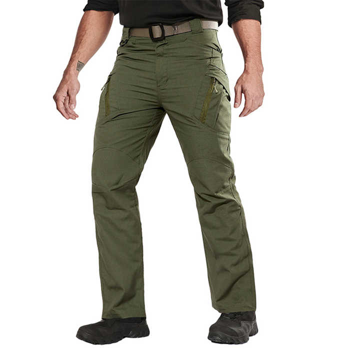 stacked khaki pants