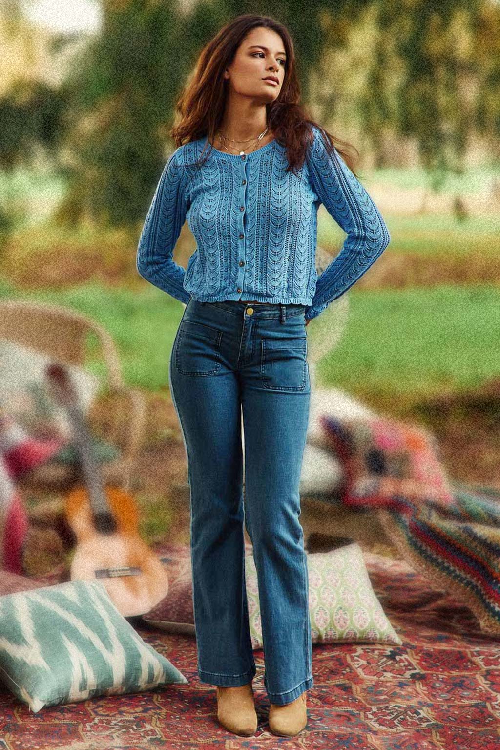 stone flared jeans