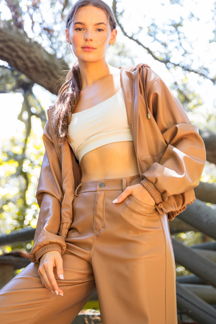 straight pu pants