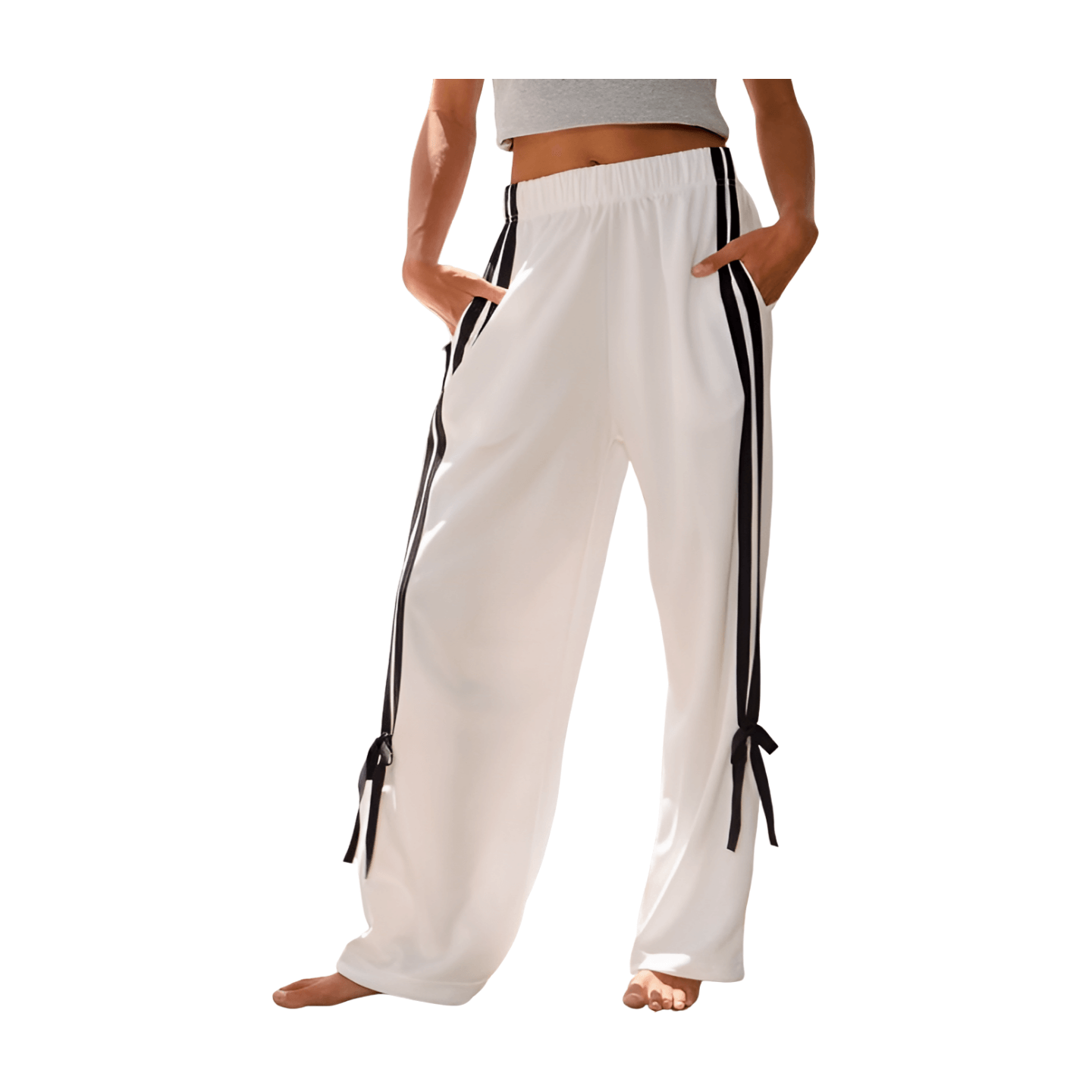 striped pants with bow