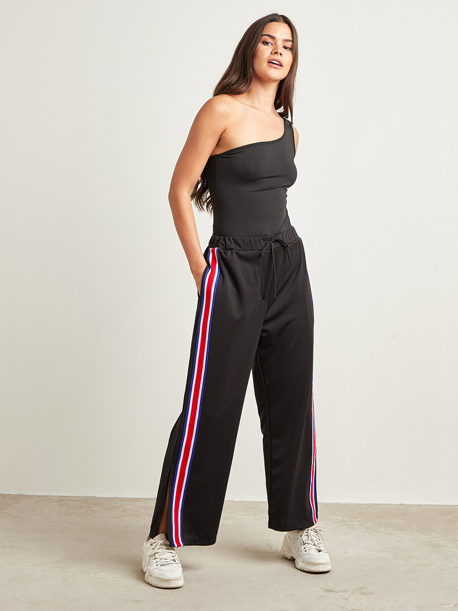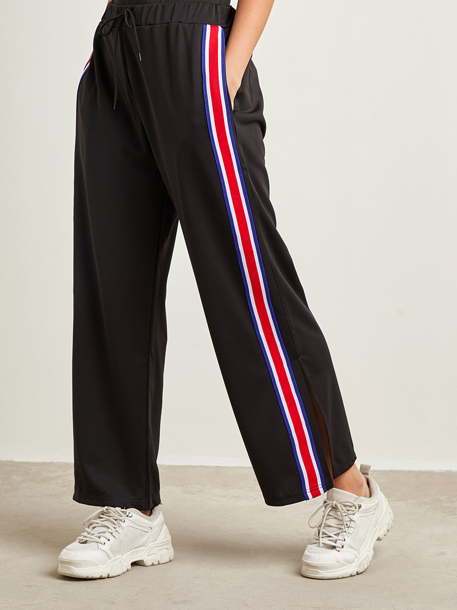 striped split hem pants