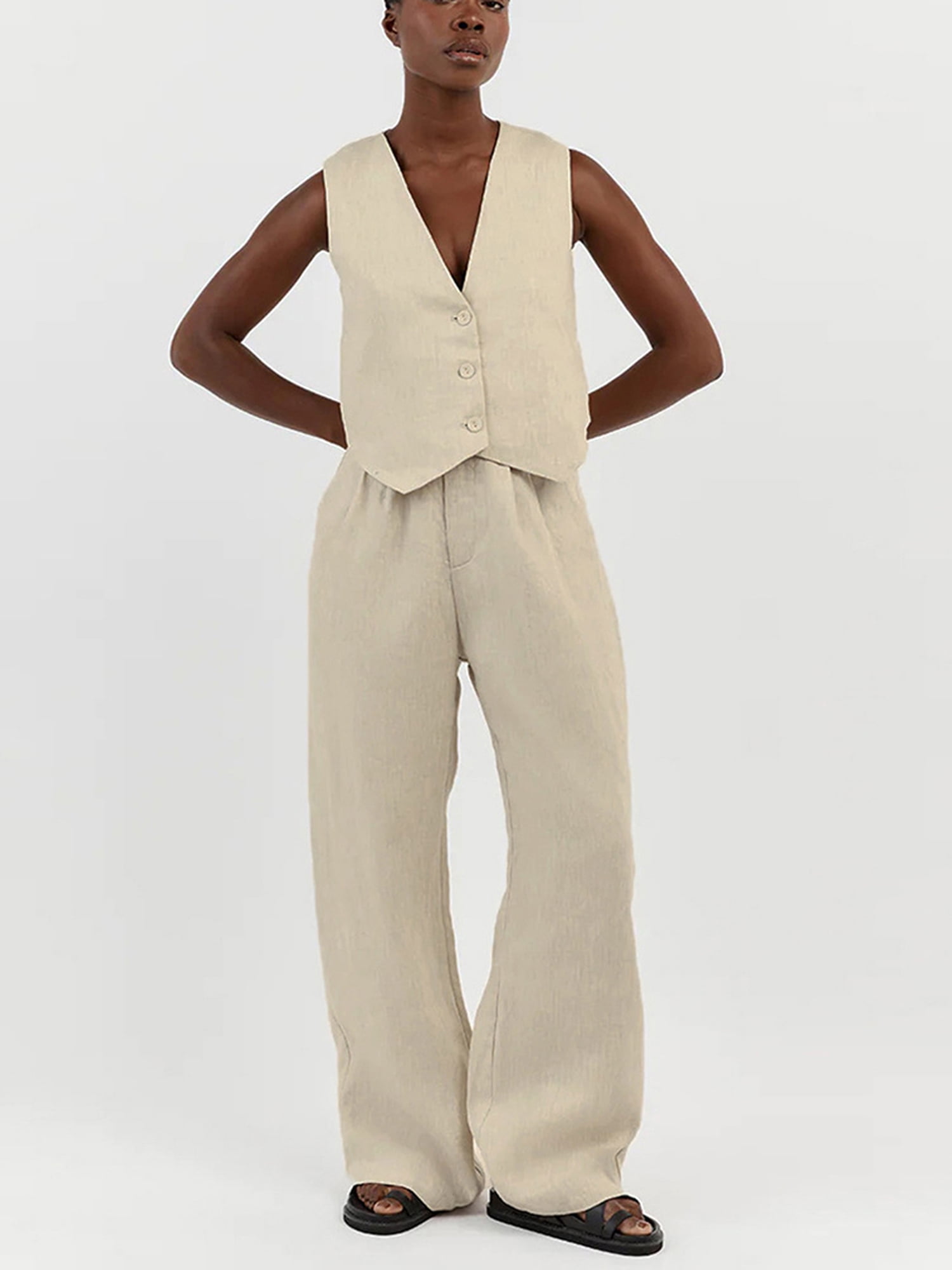 tan vest and pants