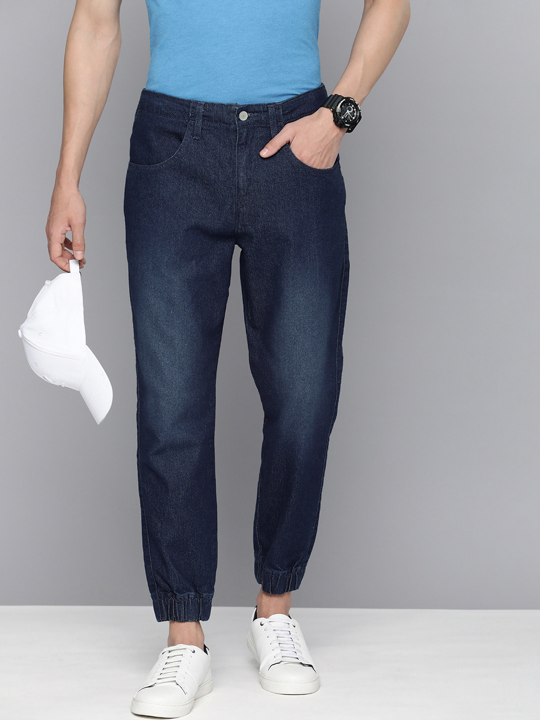 tapered denim joggers
