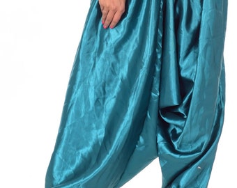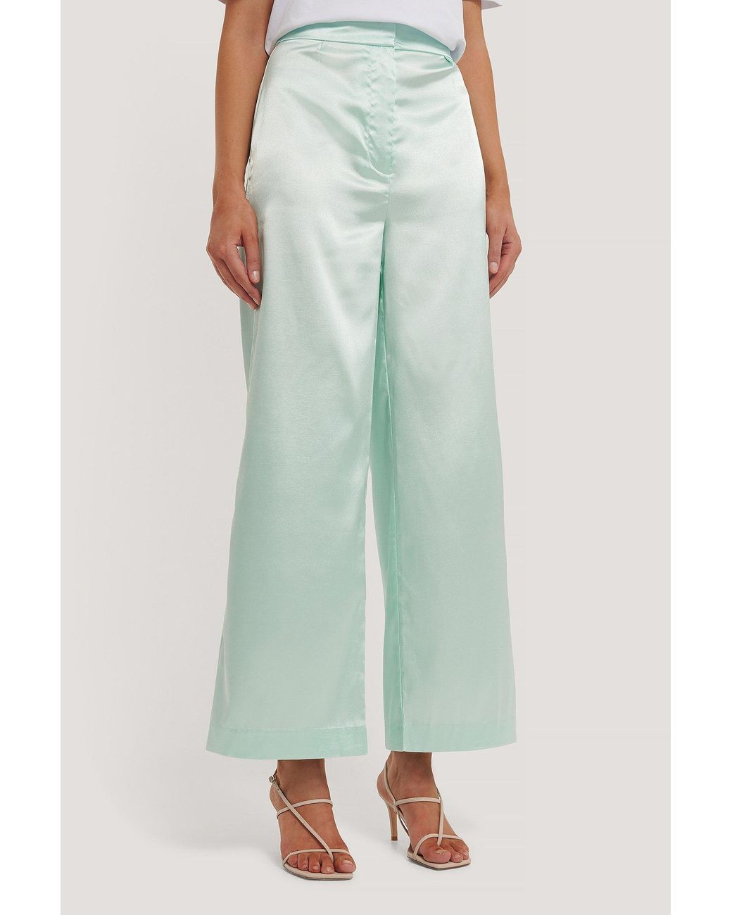 teal satin pants