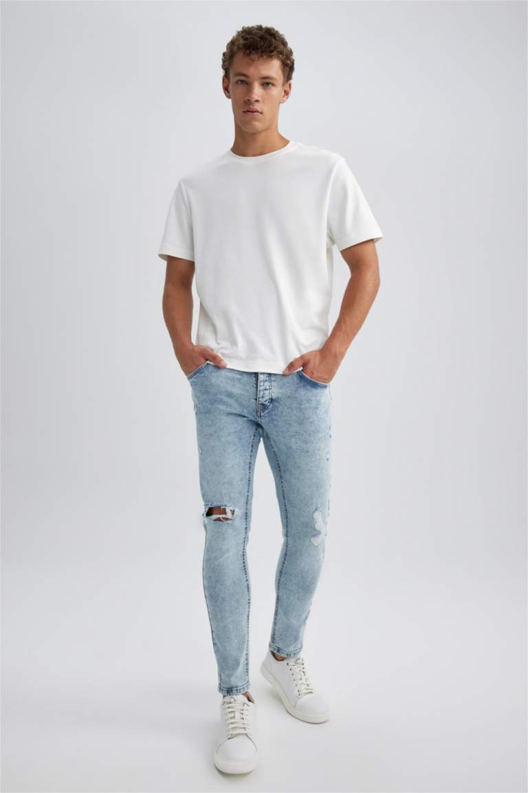 tight ripped blue jeans