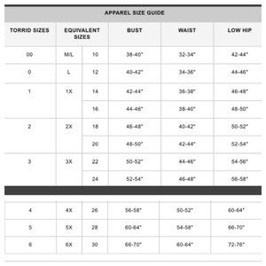 torrid jeans size chart