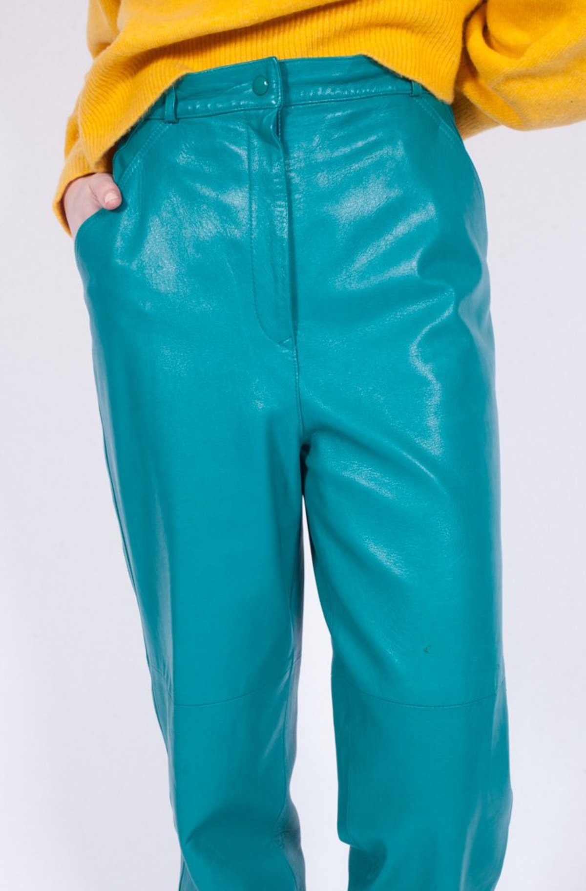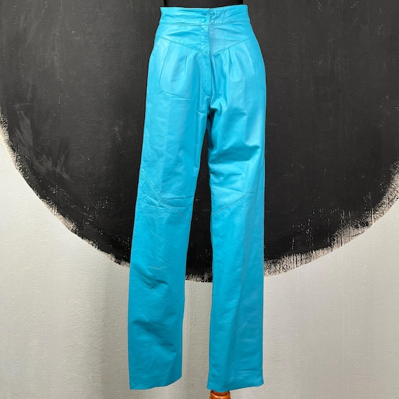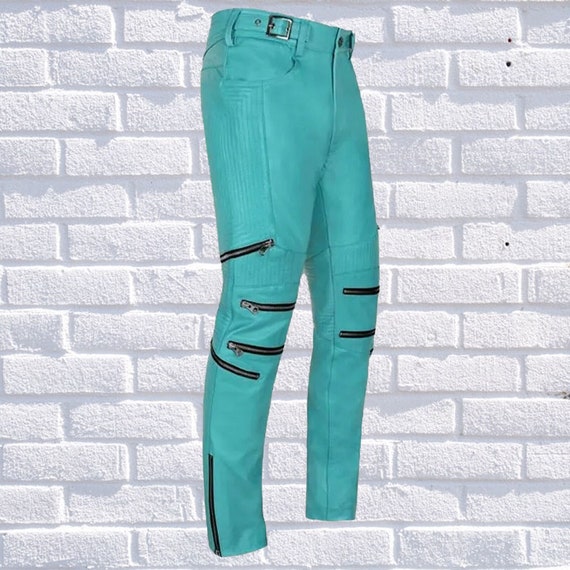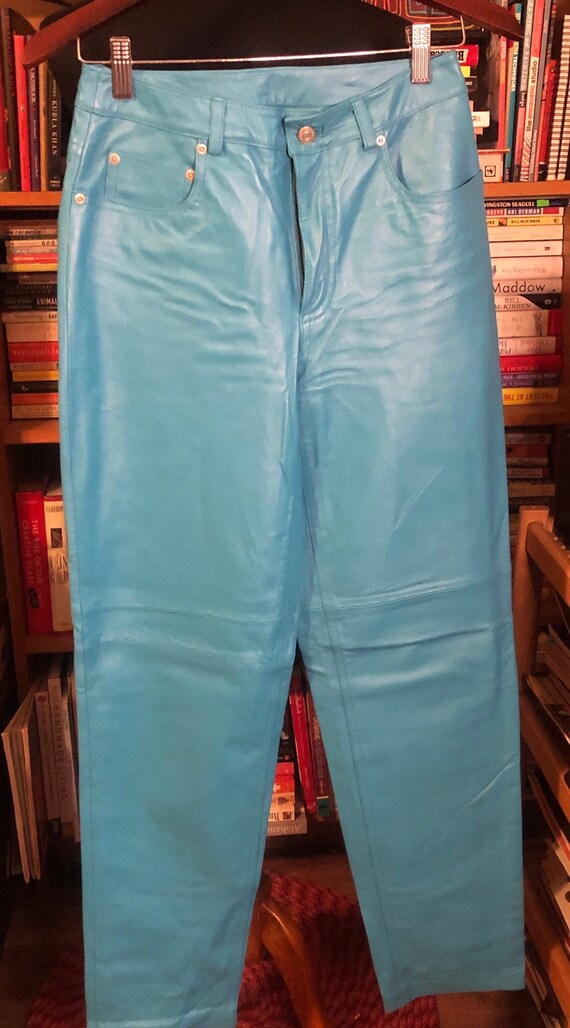 turquoise leather pants