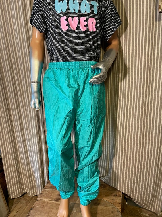 turquoise track pants