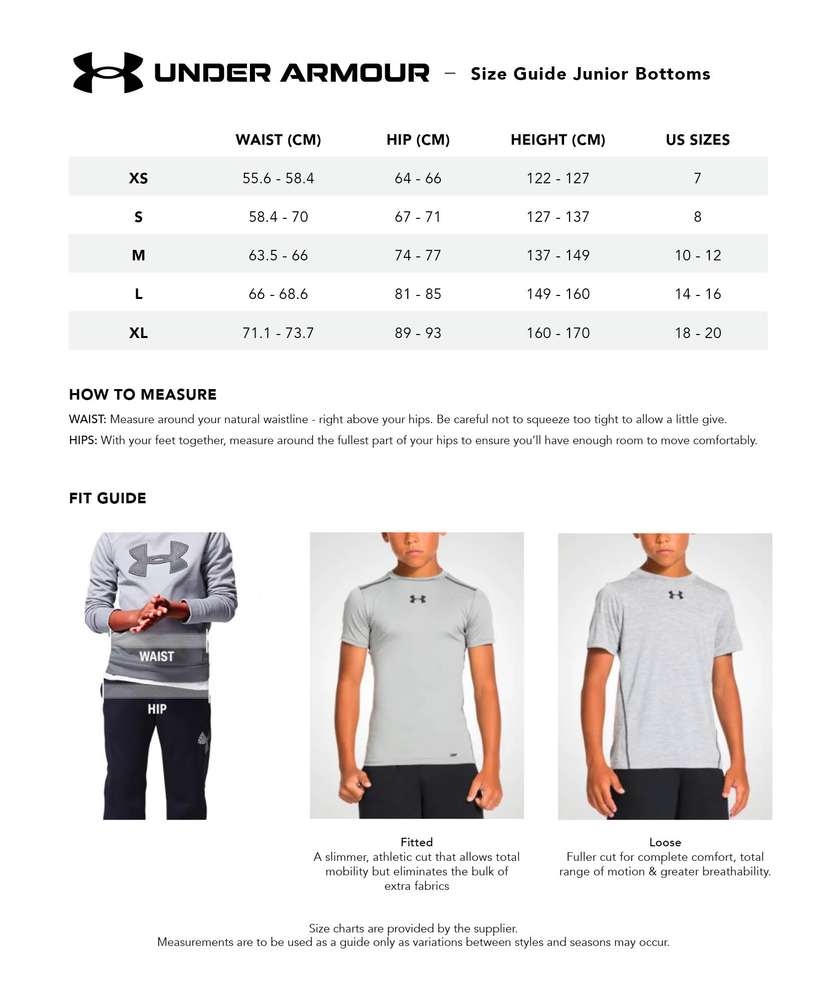under armour pants size chart