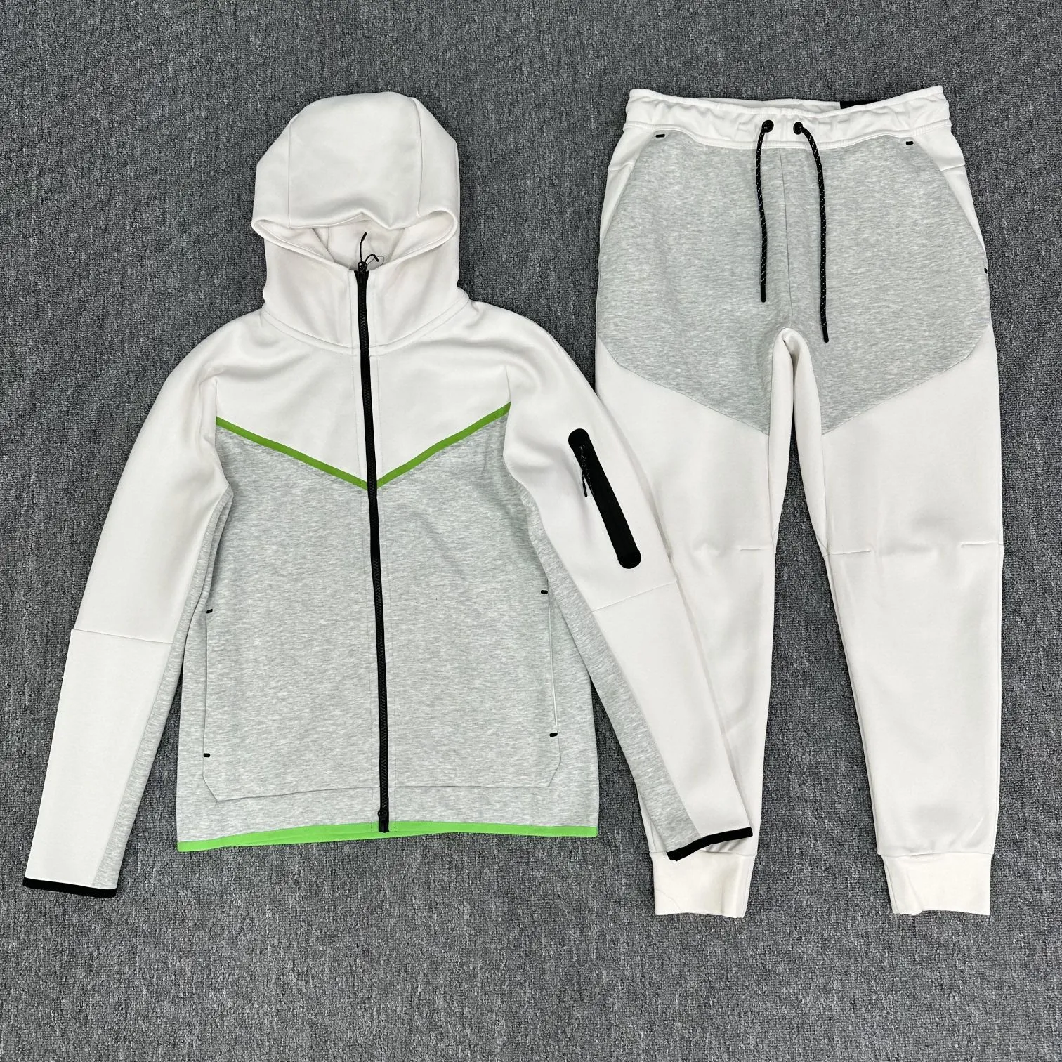 white and grey nike tech tracksuit
