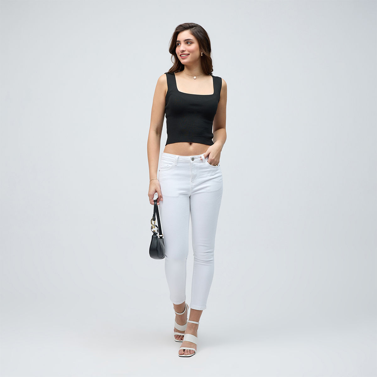 white ankle length jeans