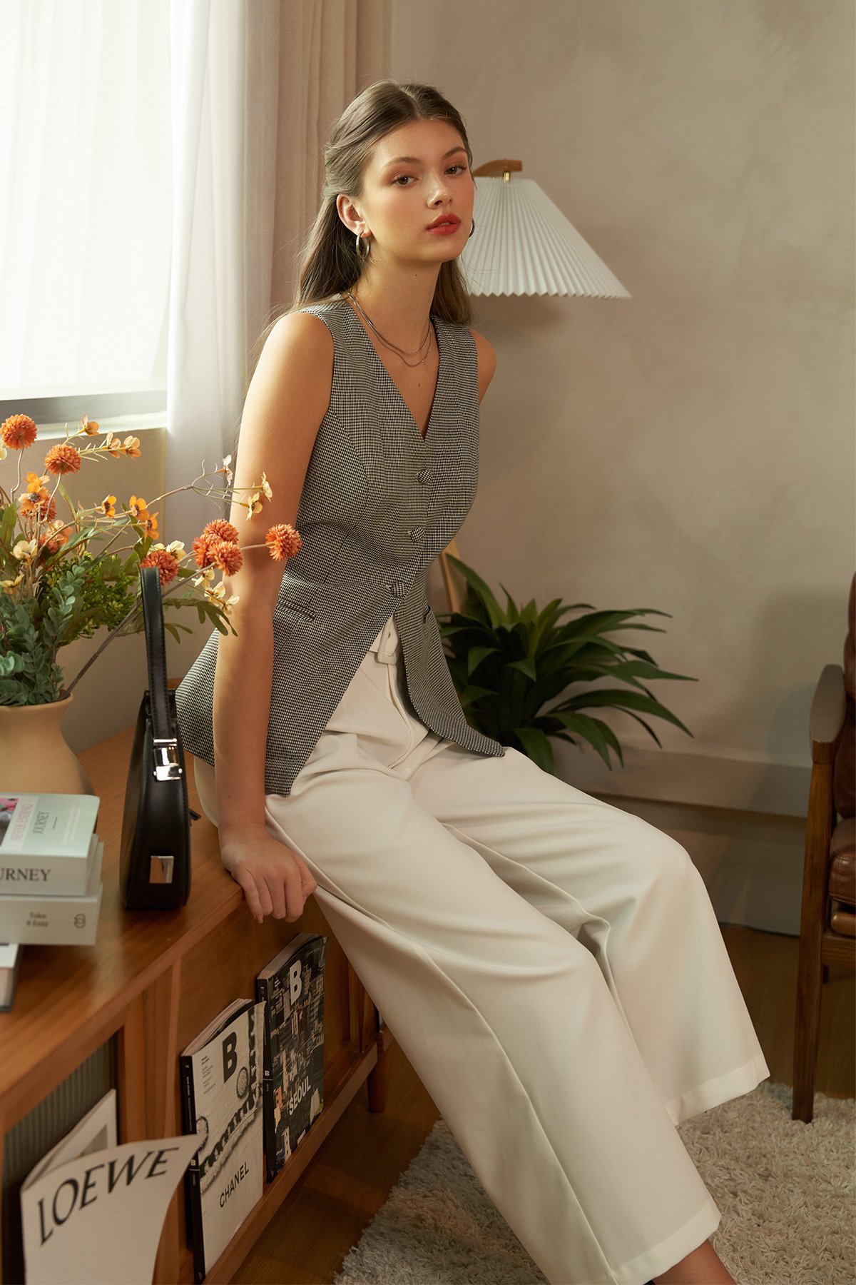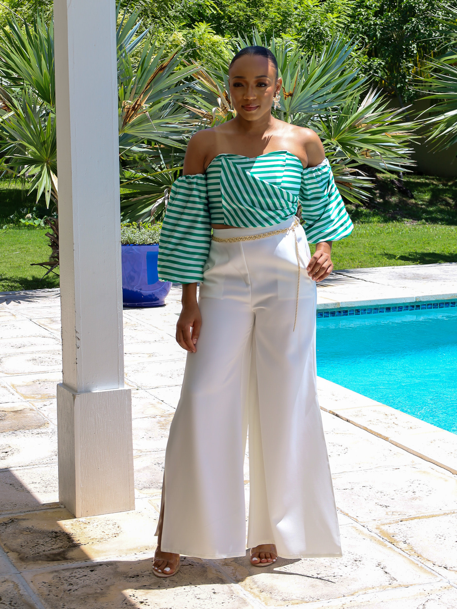 white belted pants