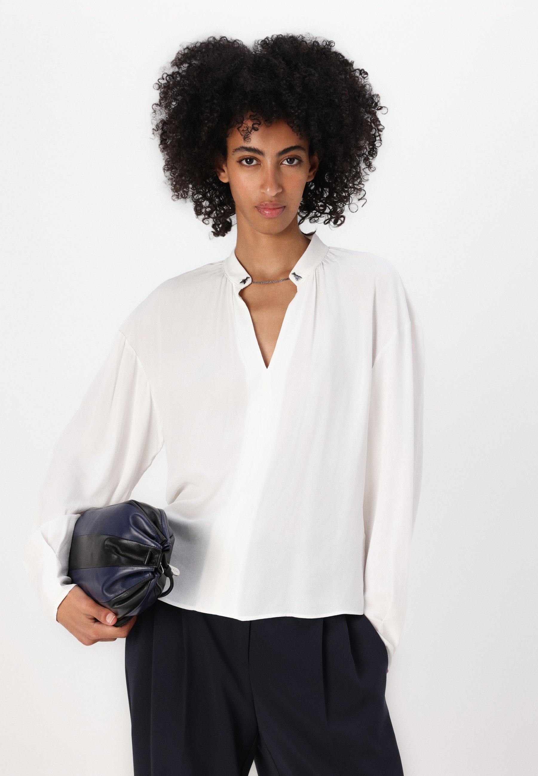 white blouse and black pants