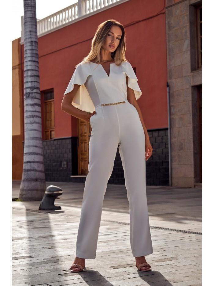 white cape pantsuit