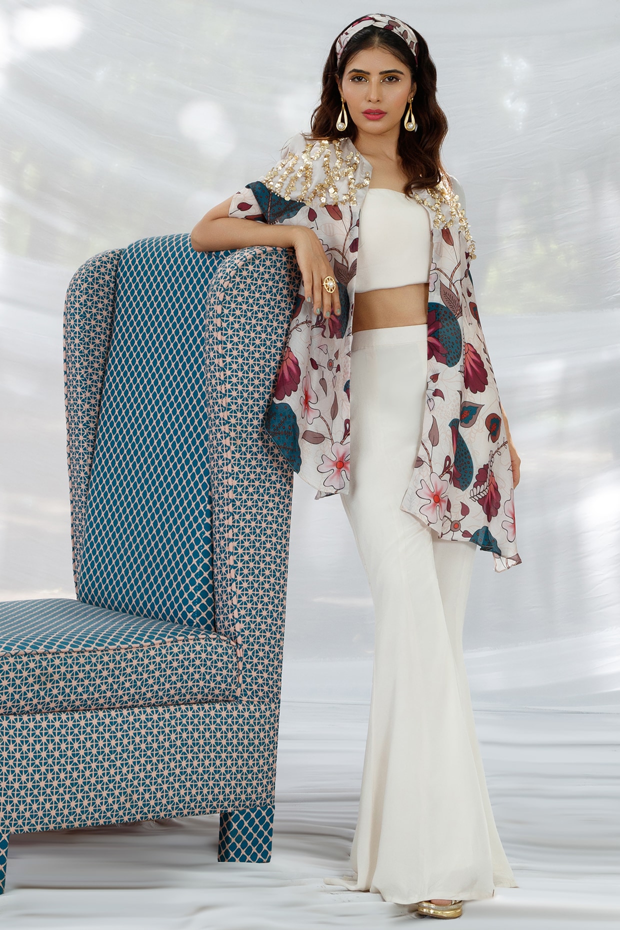 white chiffon pant suit