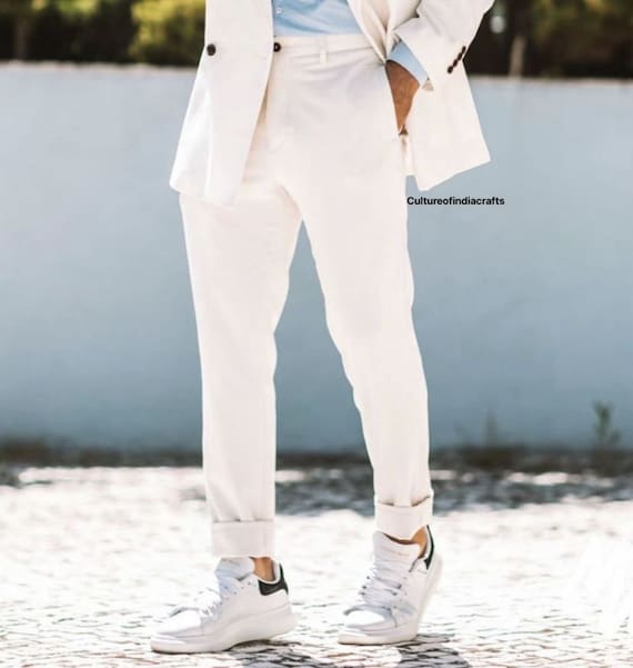 white coat pant combination