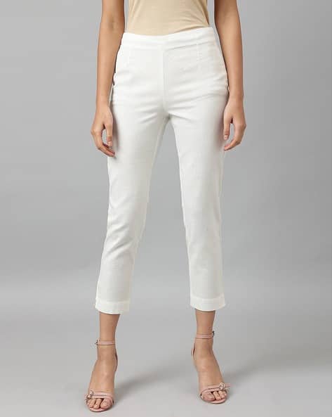 white cotton ankle pants