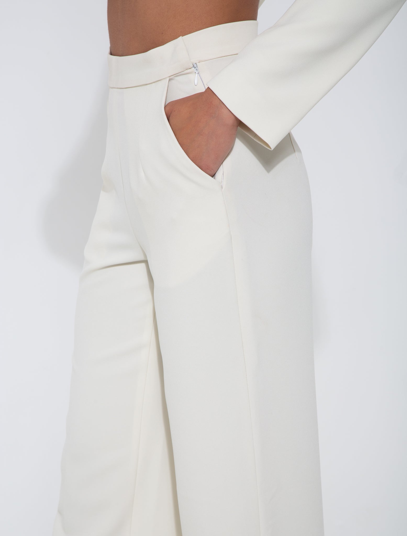 white crepe trousers