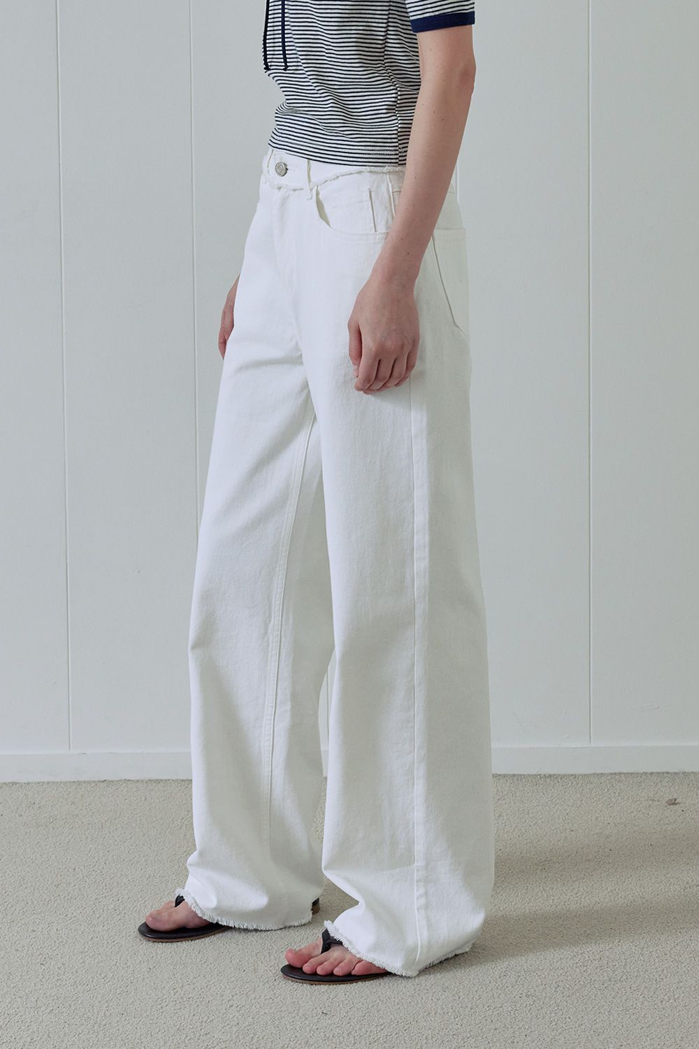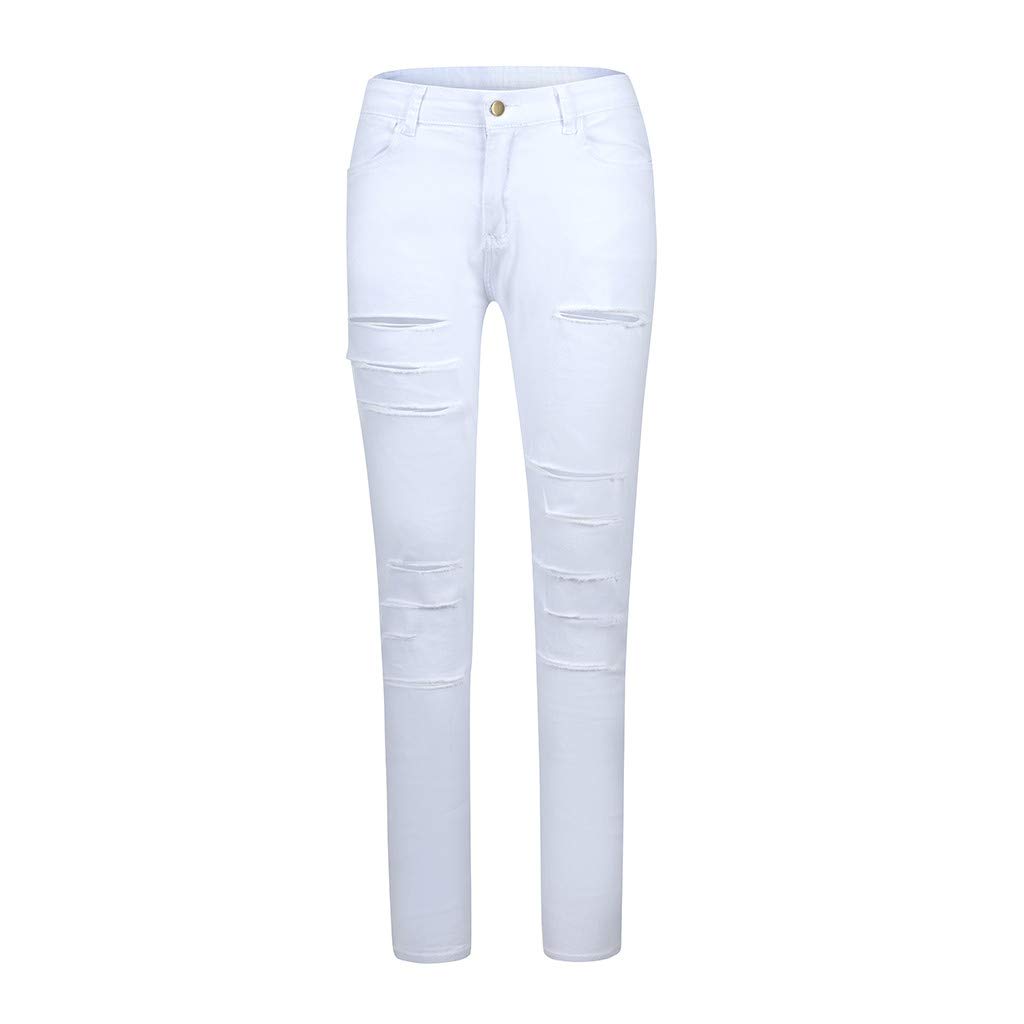white cut up pants