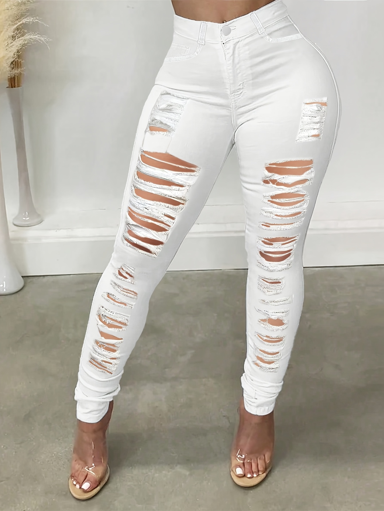 white distressed denim jeans