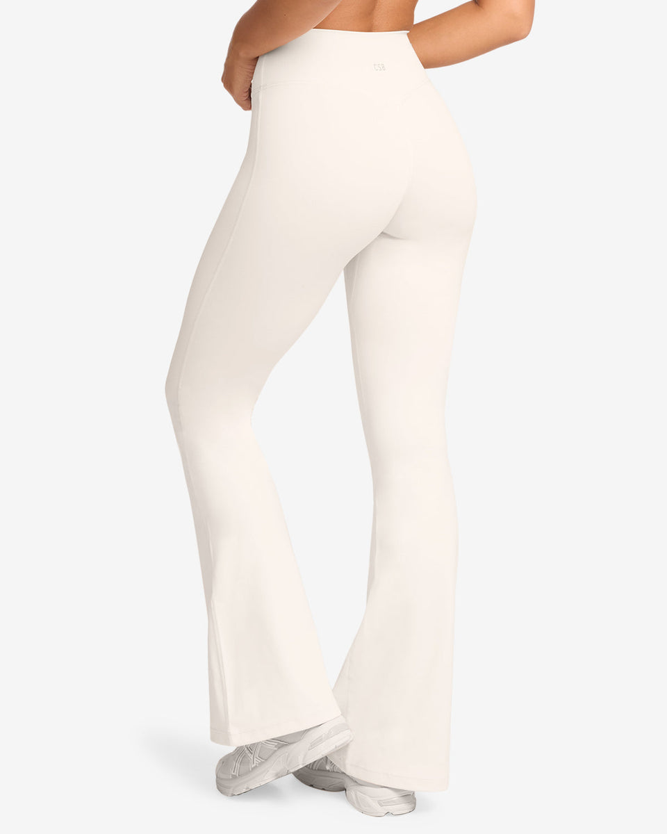 white flared leggings
