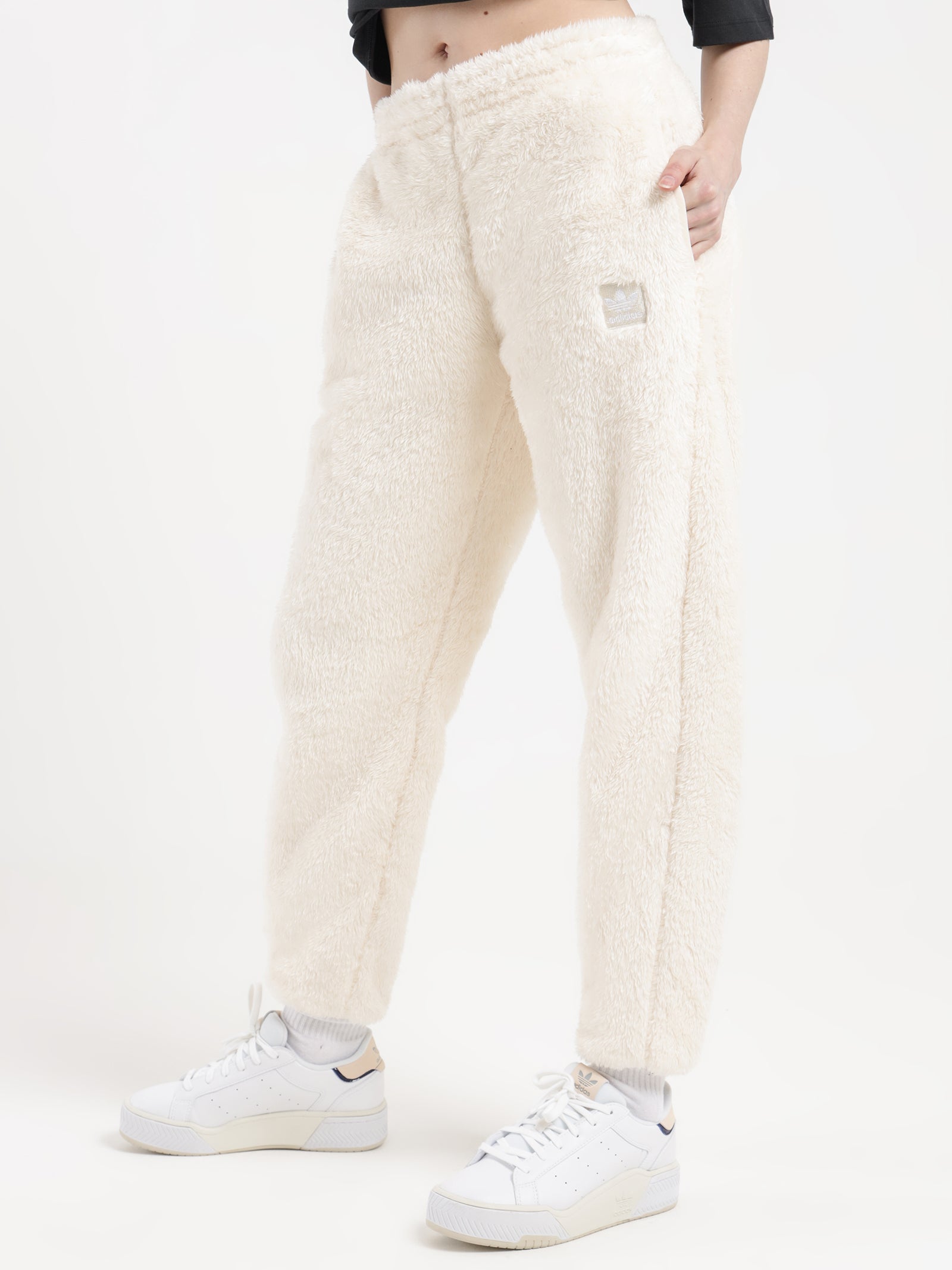 white fuzzy pants