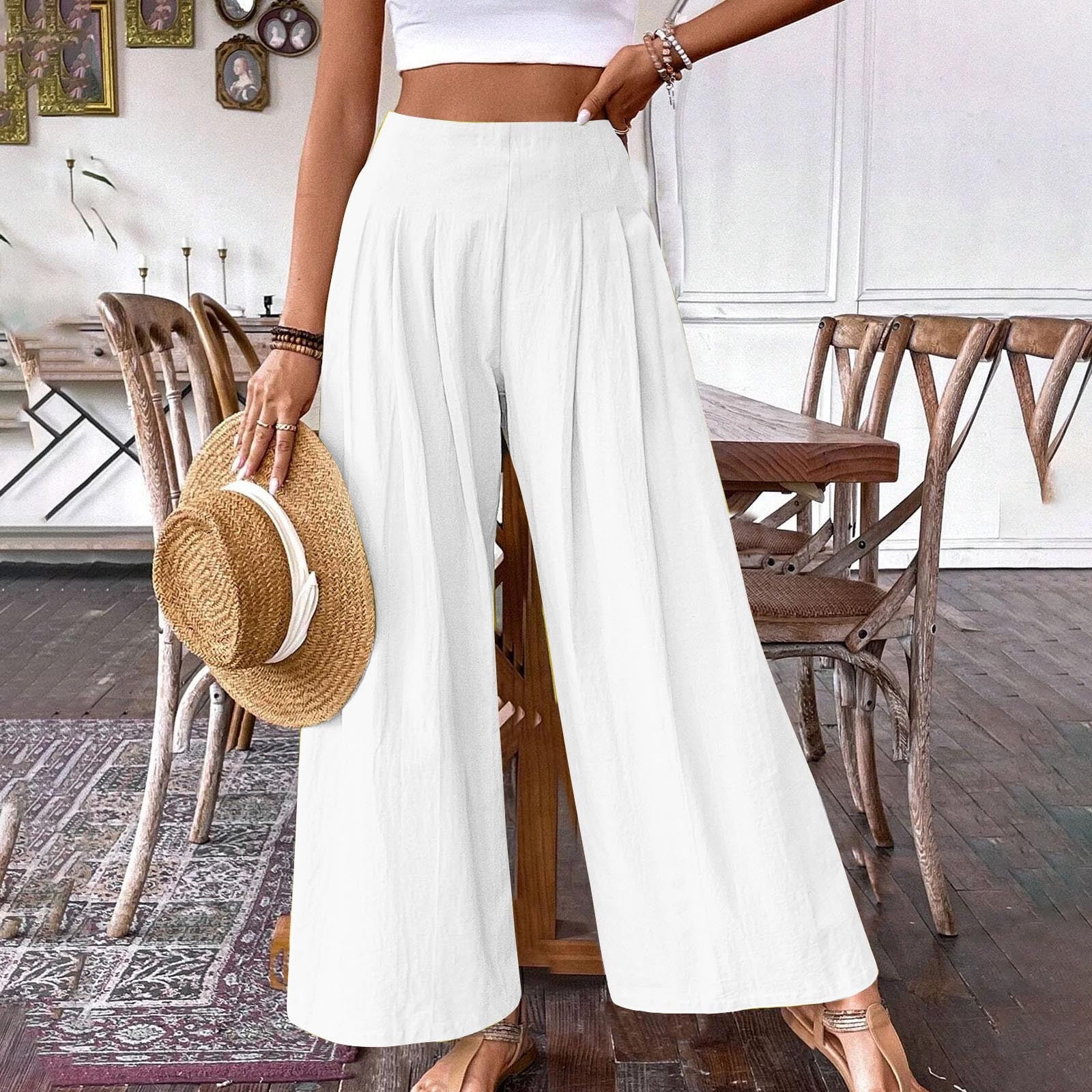white high waisted beach pants