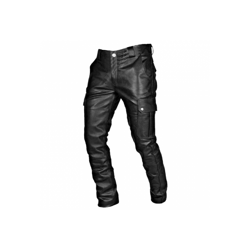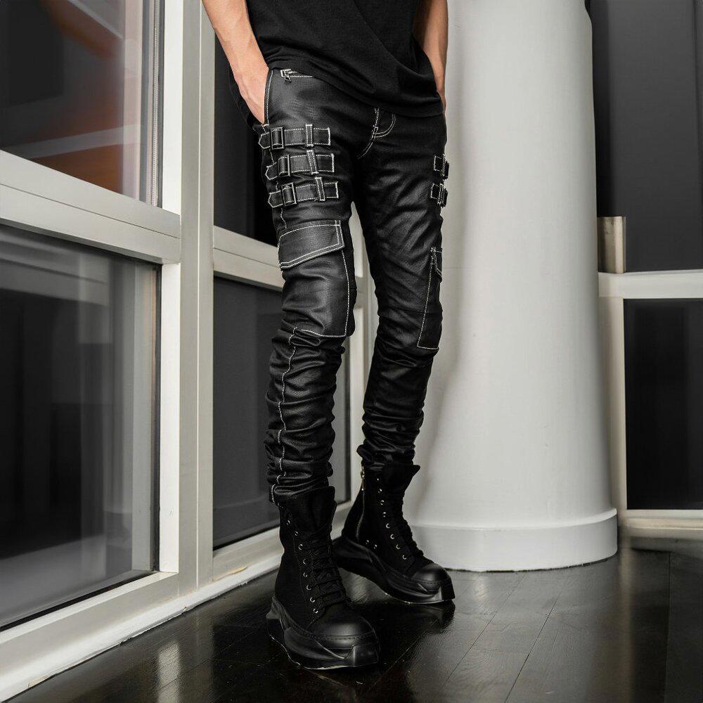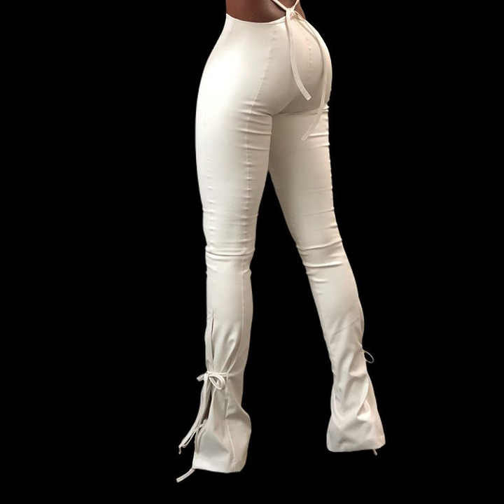 white leather stacked pants