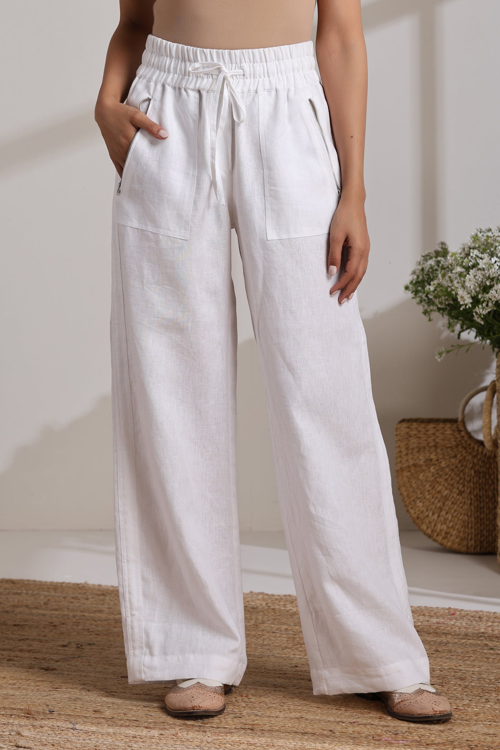 white linen pants drawstring