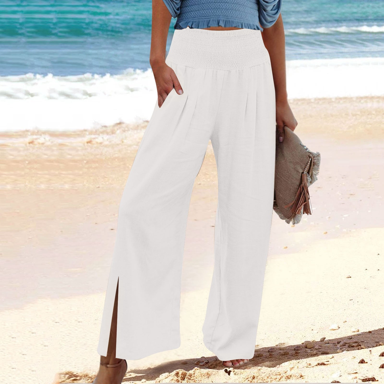 white long beach pants