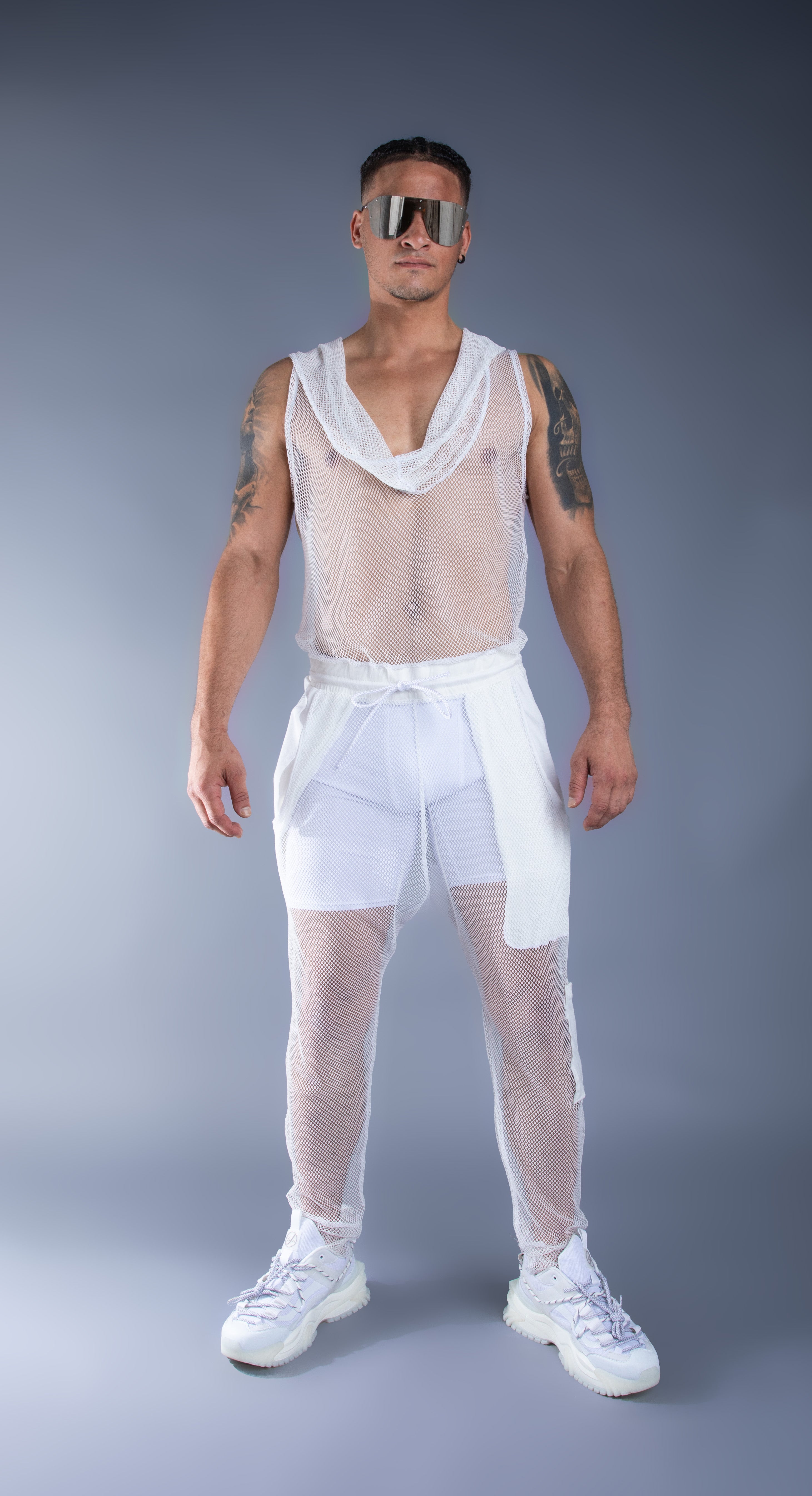 white mesh jumpsuit