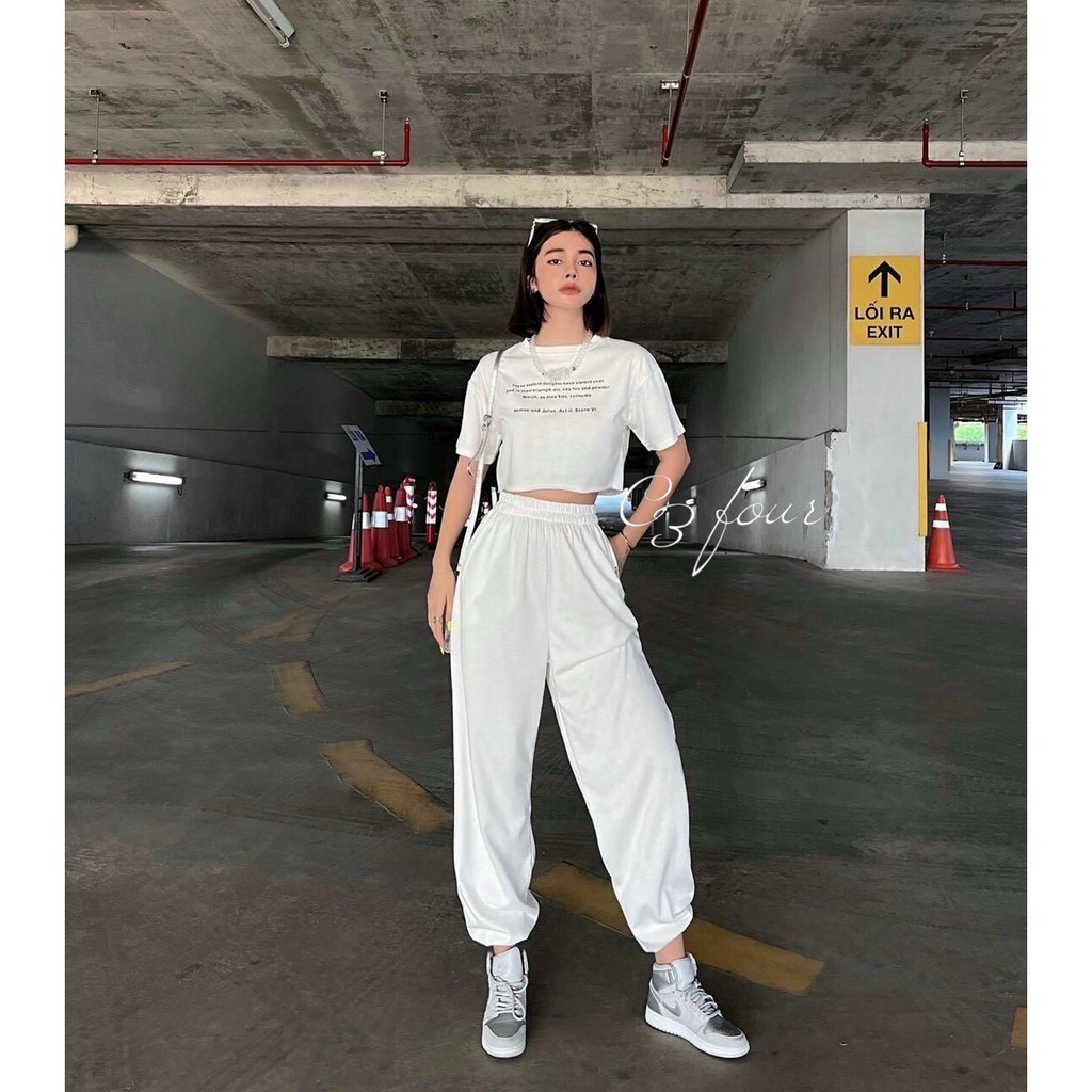 white pant set crop top