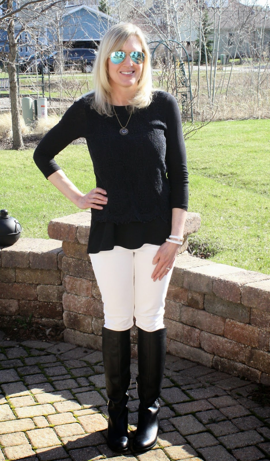 white pants black boots