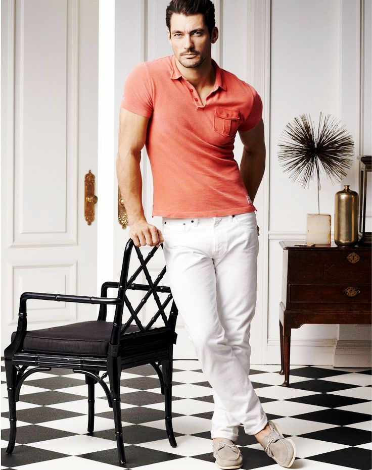white pants red shirt