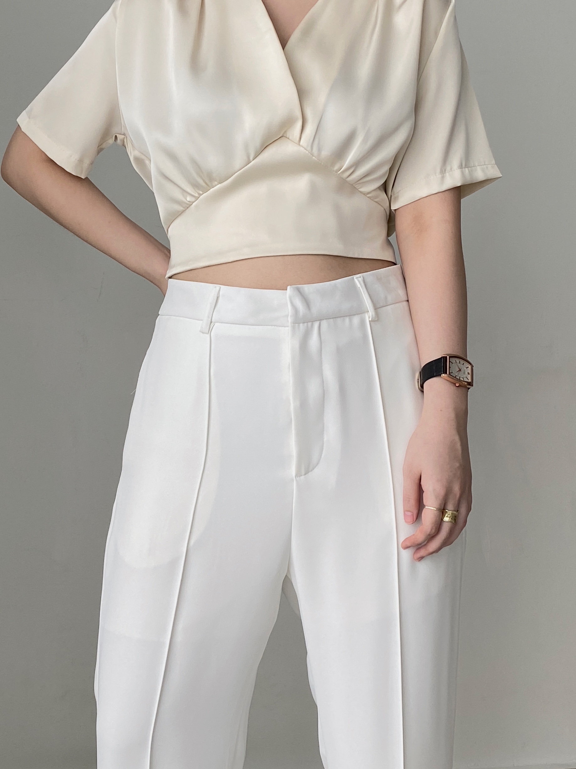 white pants with front slits