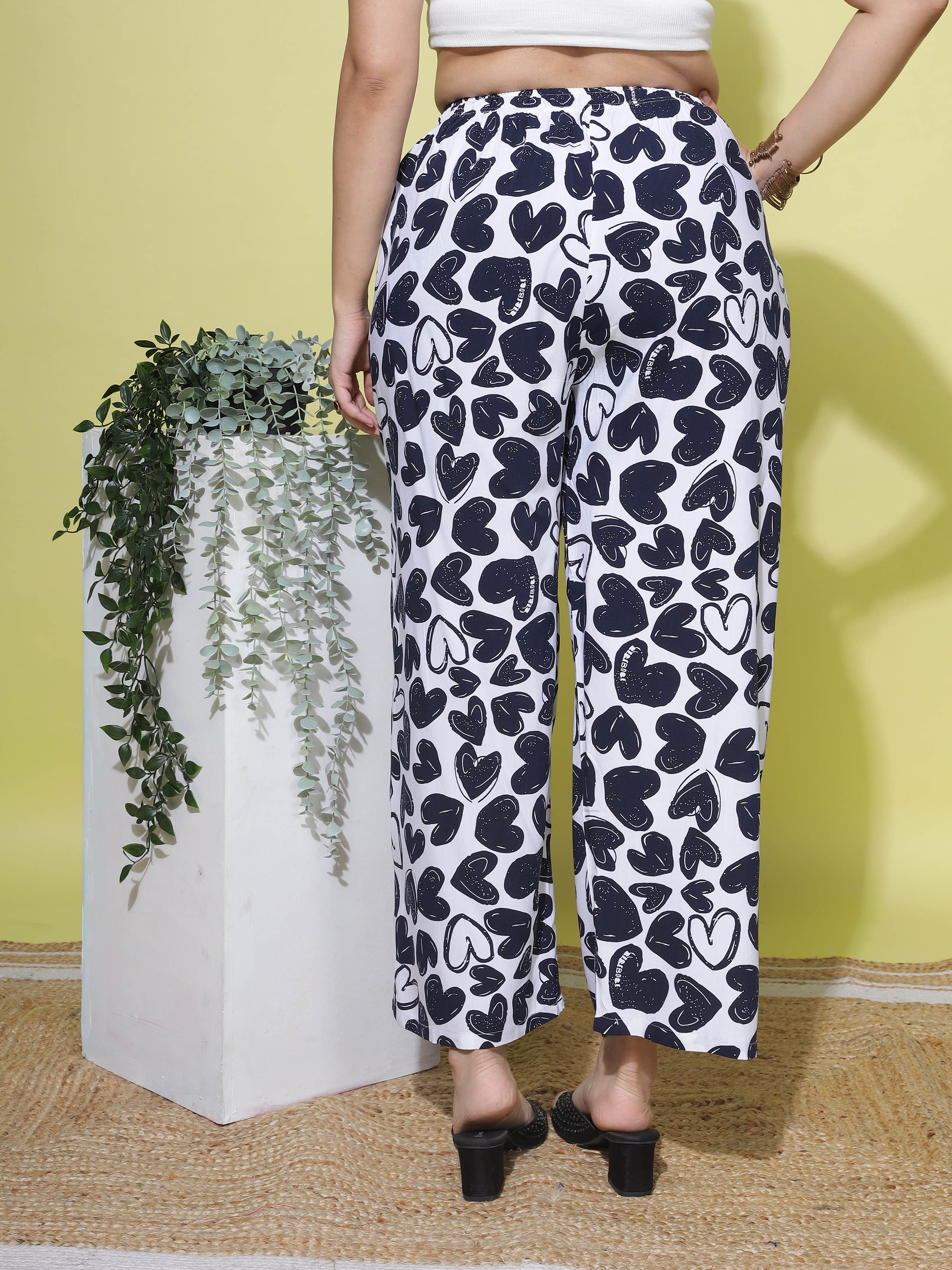 white printed palazzo pants