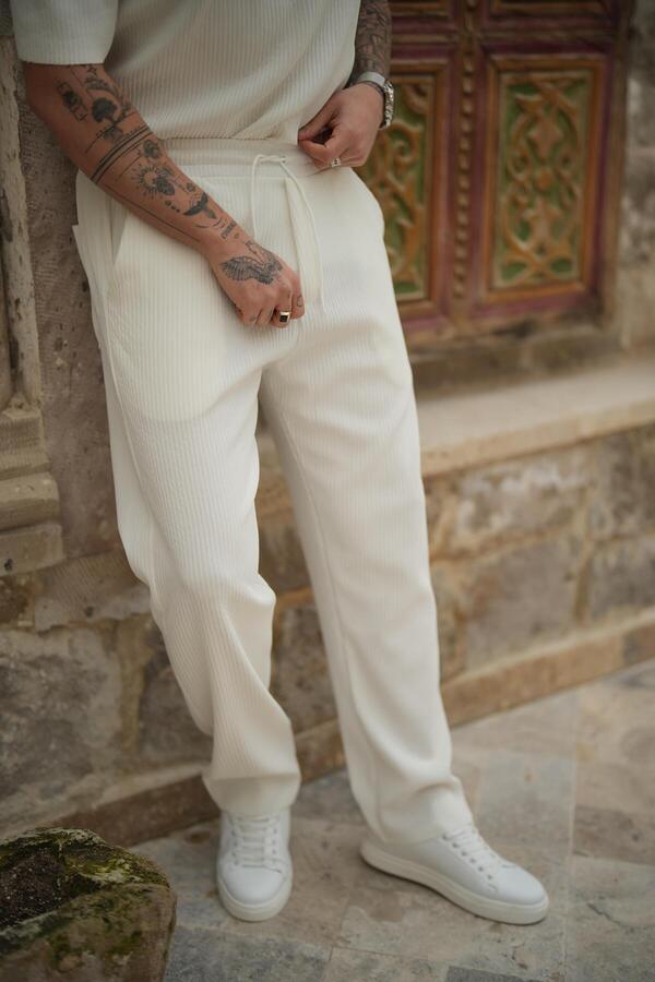 white ribbed trousers