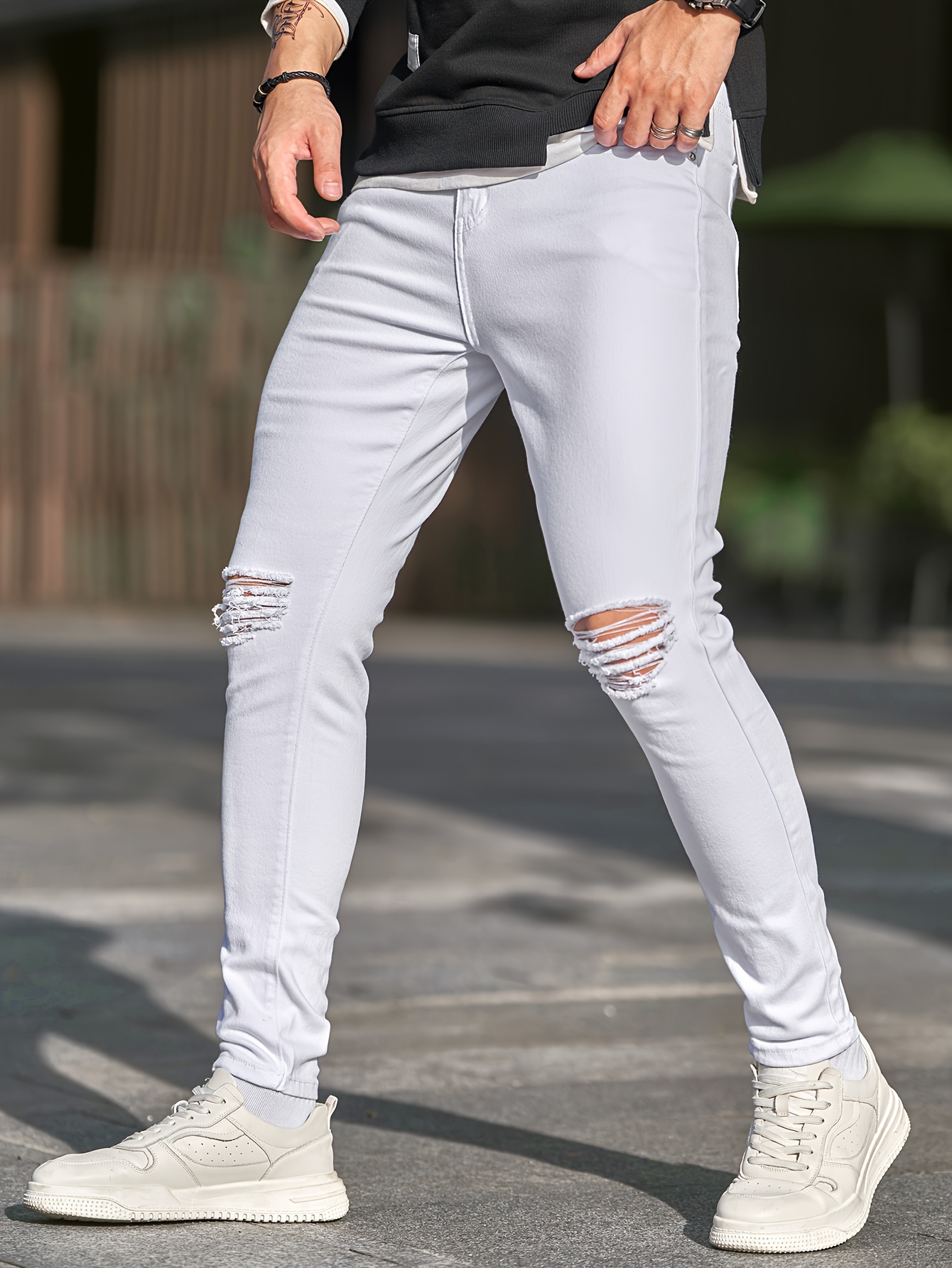 white ripped pants