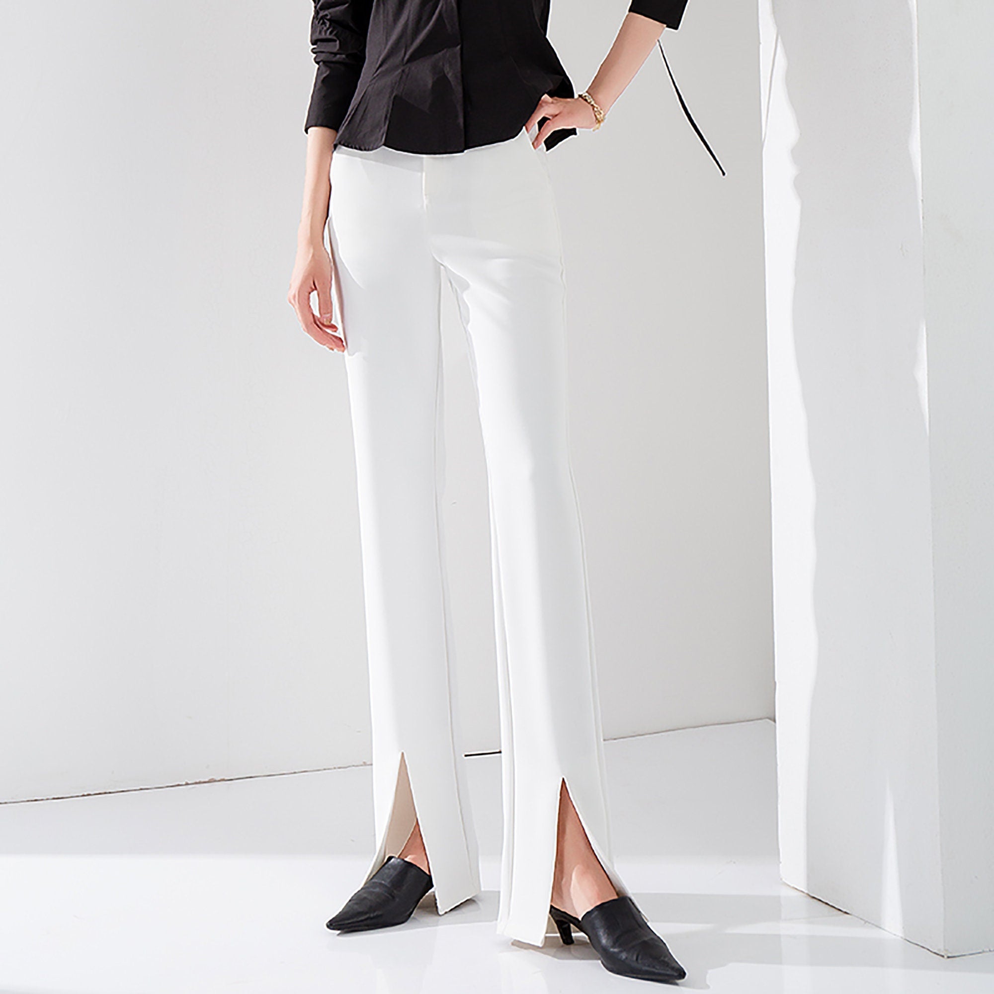 white split hem pants