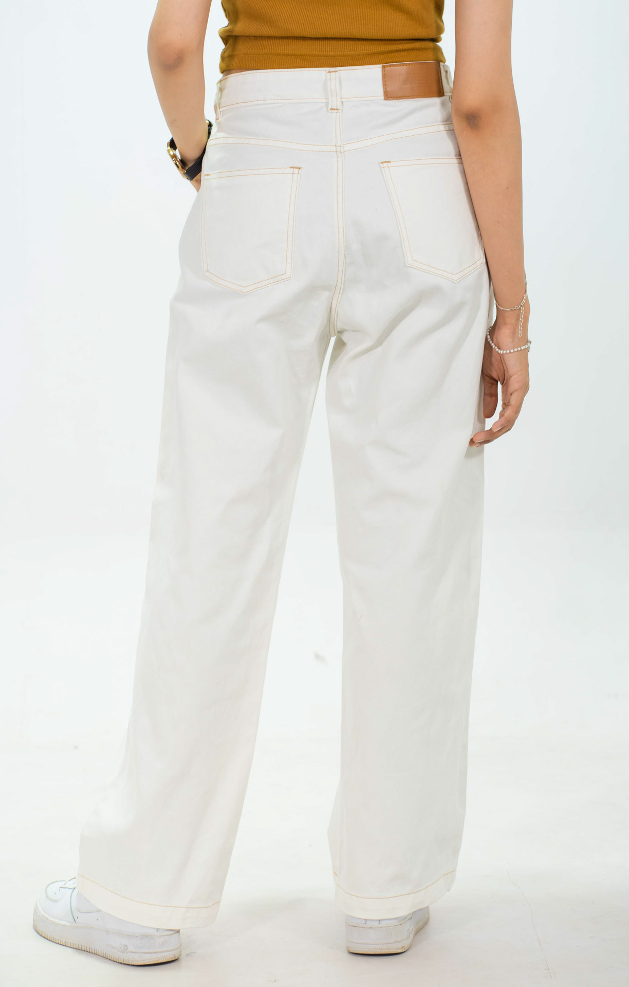 white stitched pants