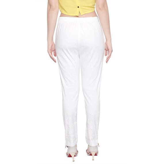 white stretchable pants