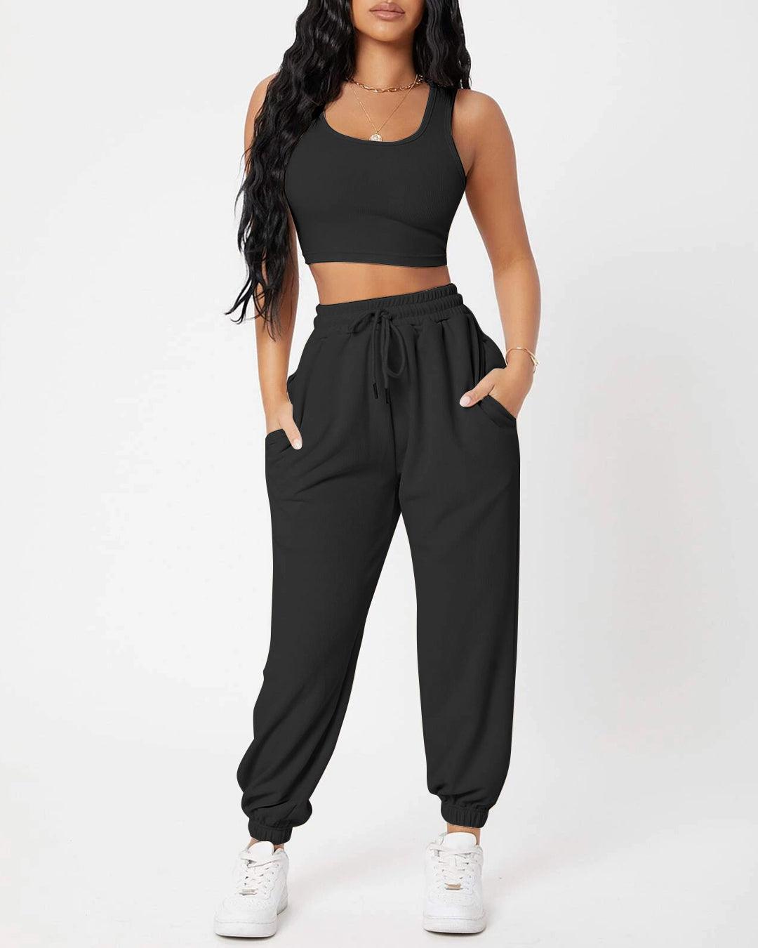 womens black jogger set