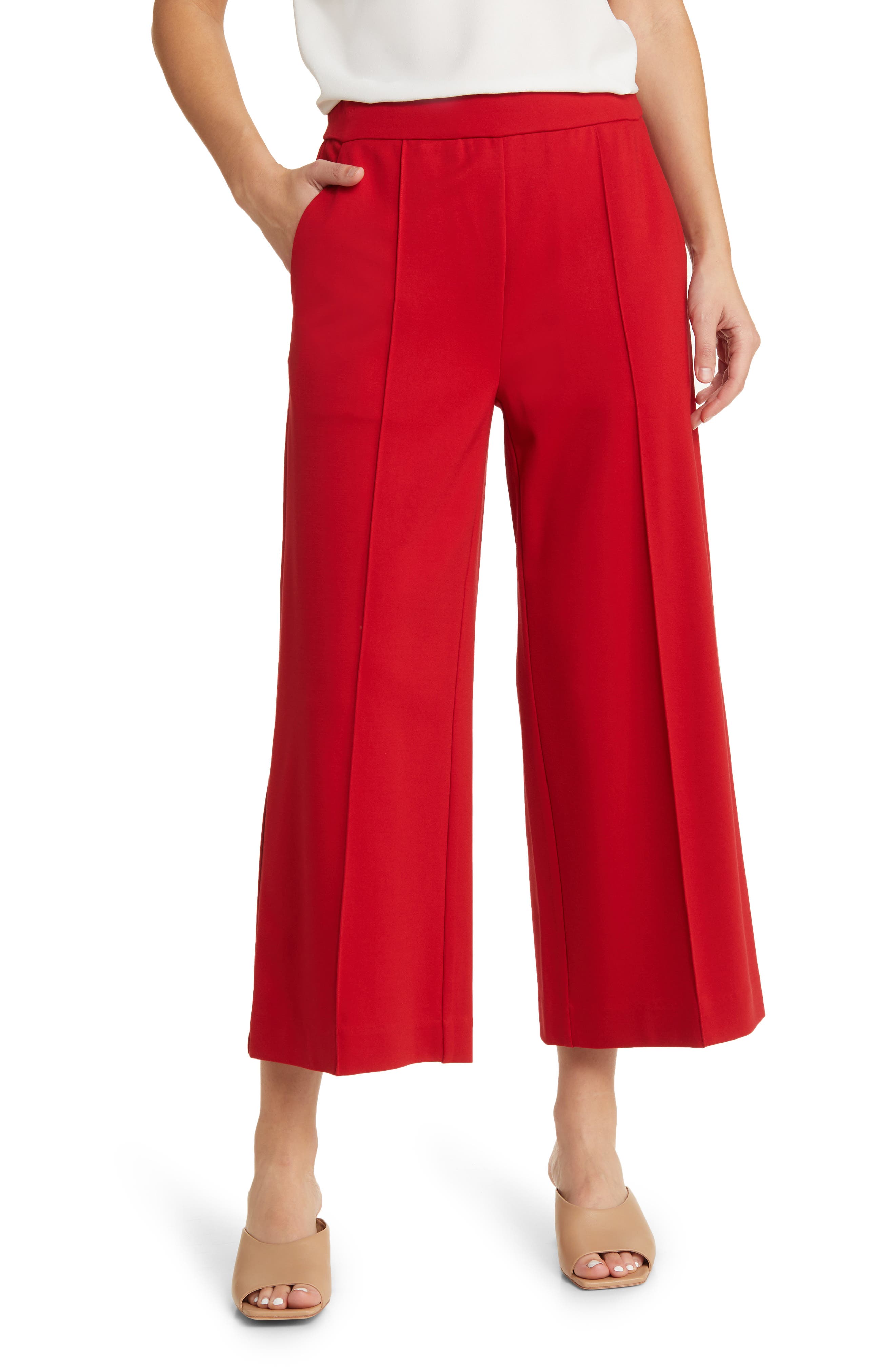 womens red pull on pants