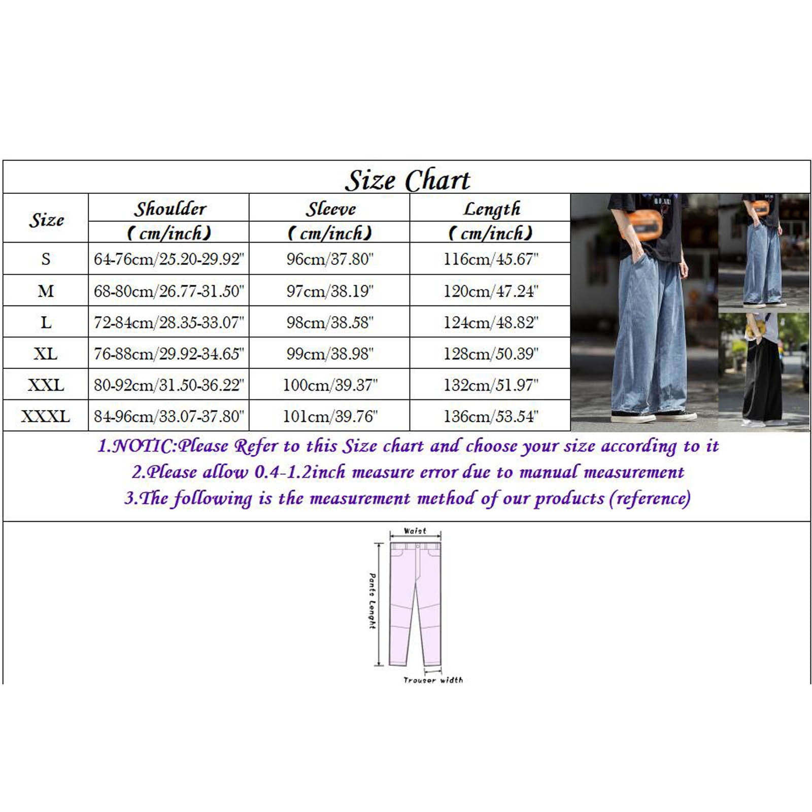 xl size pants in cm