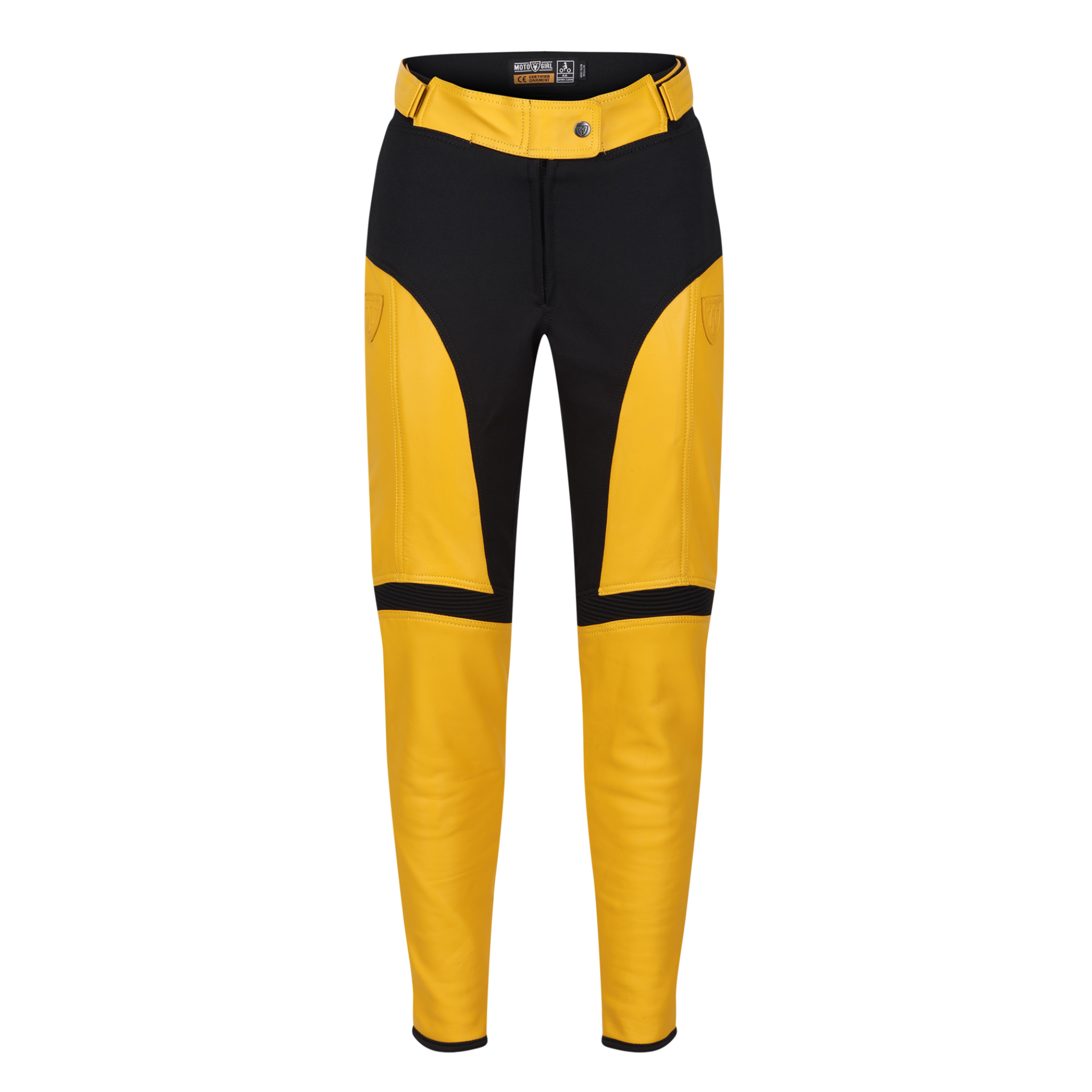yellow leather trousers