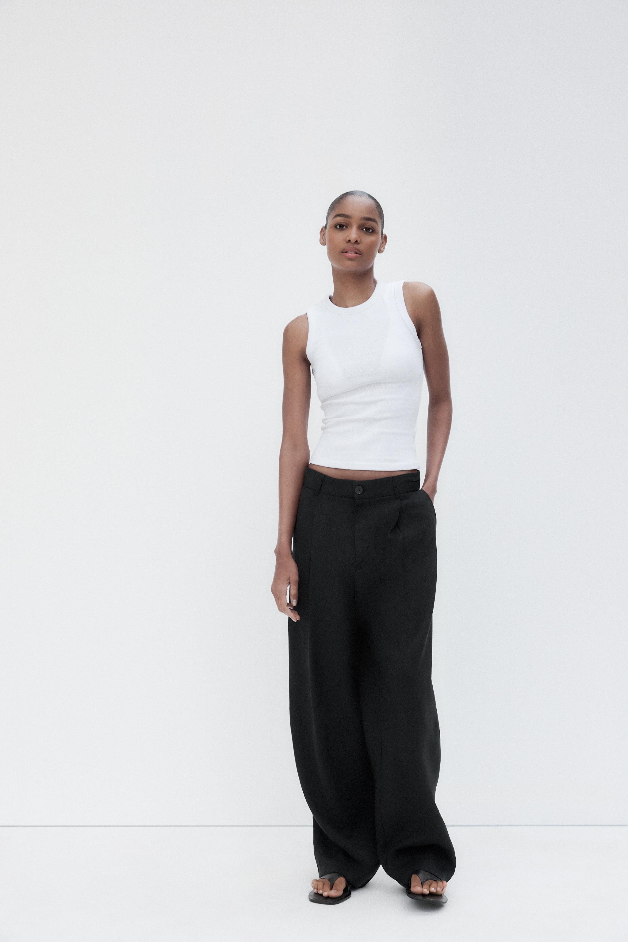 zara basic black trousers