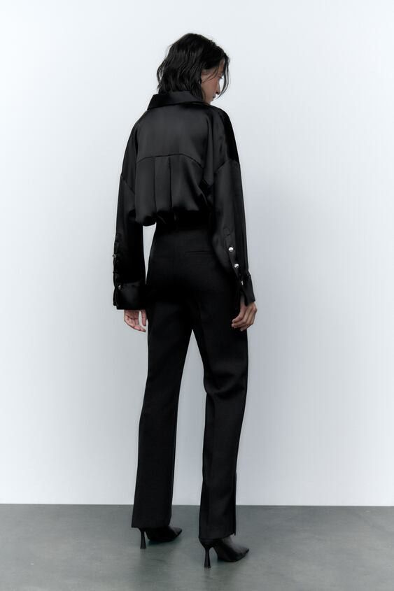 zara black split hem pants
