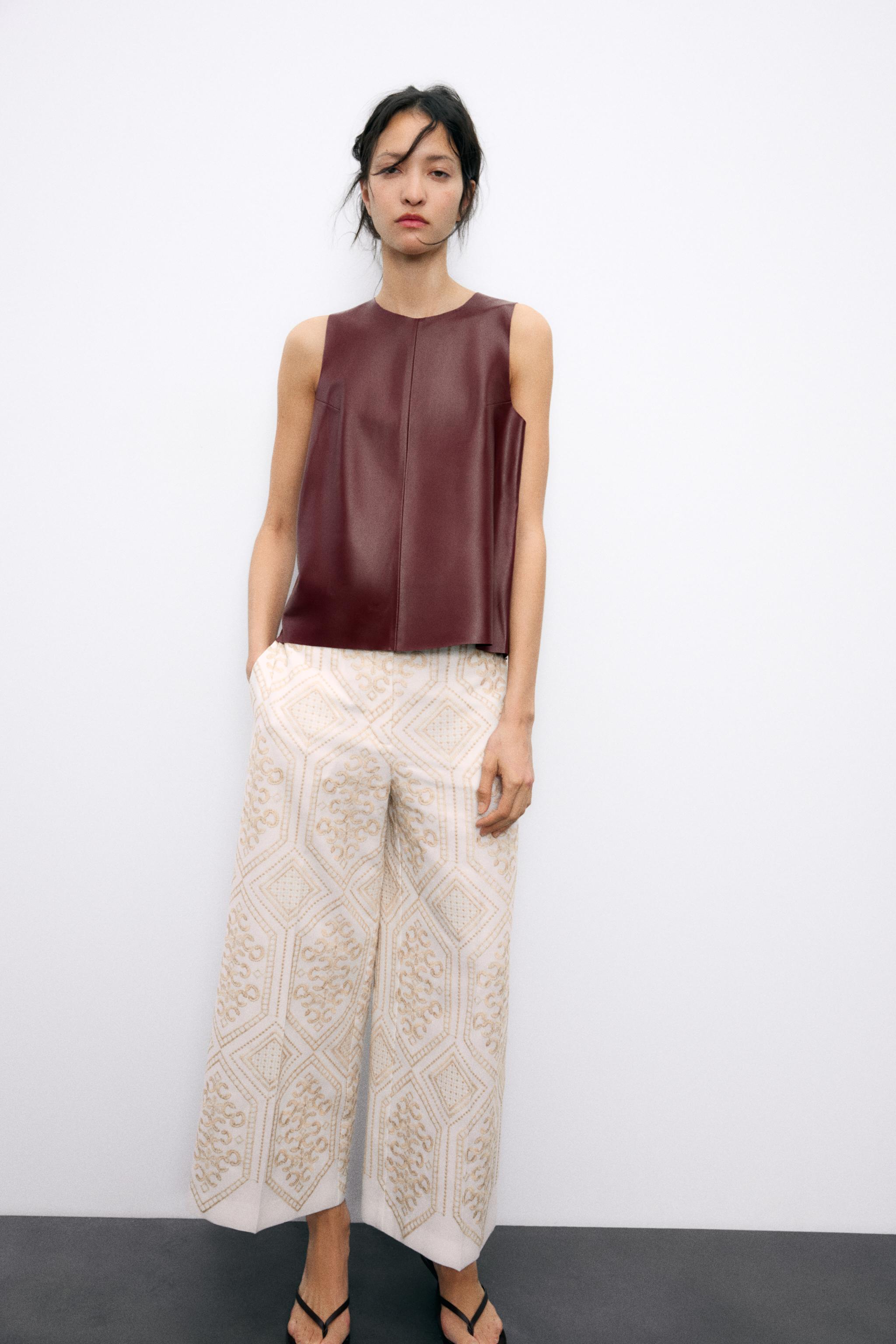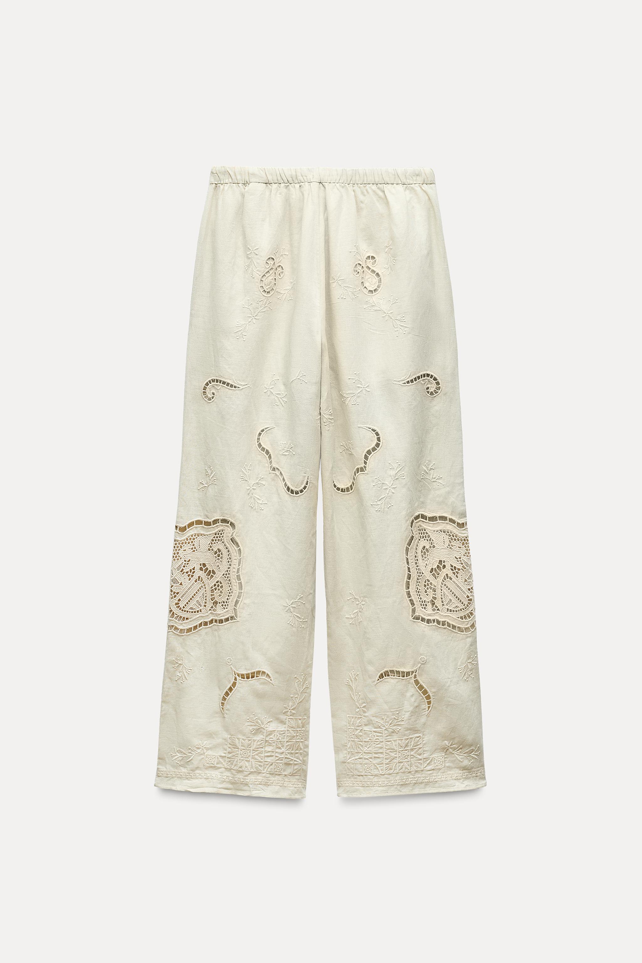 zara embroidered trousers