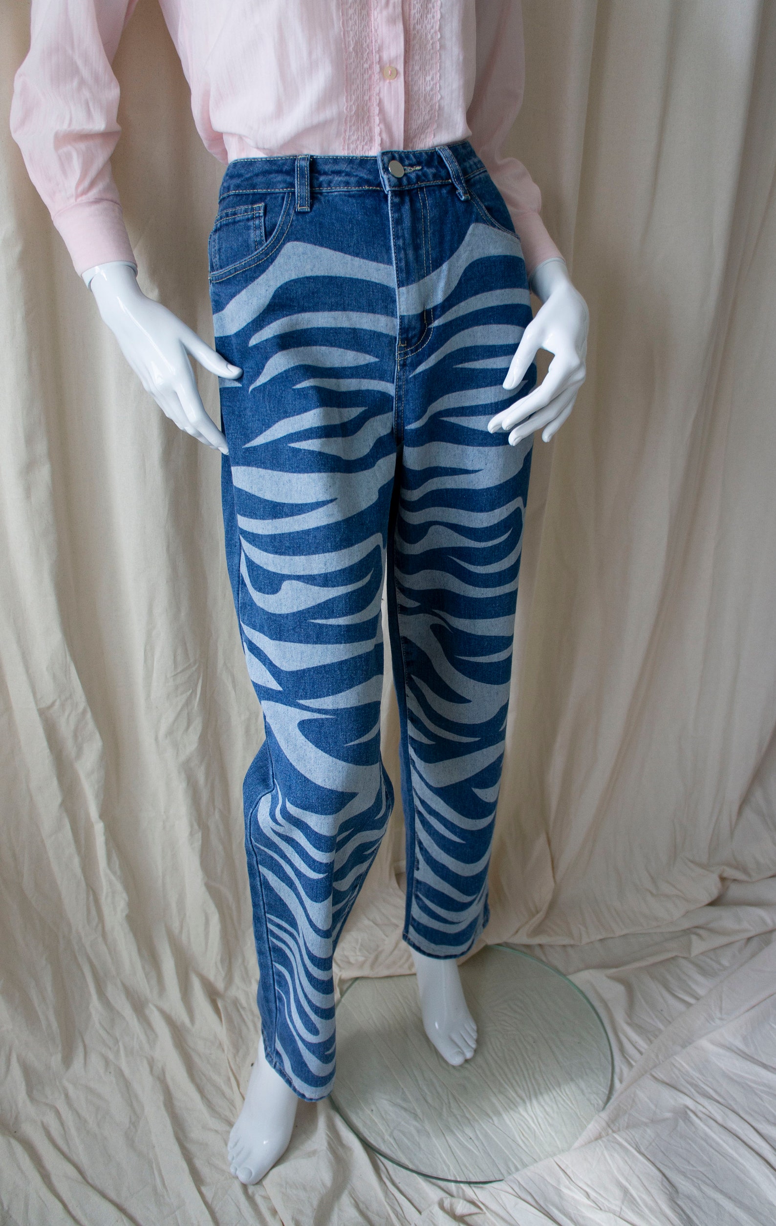 zebra denim jeans
